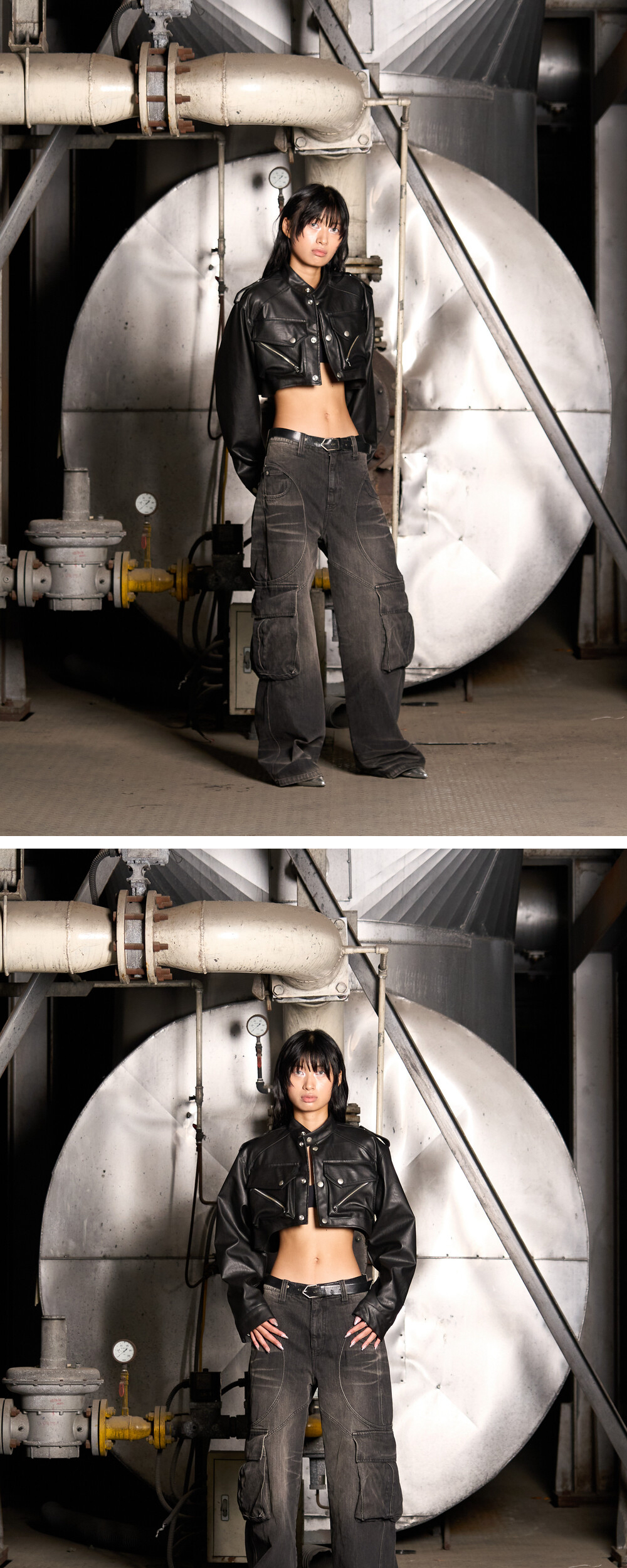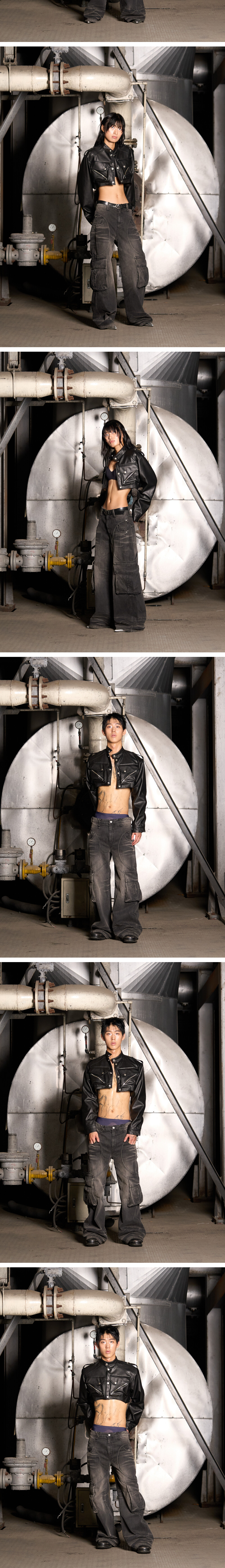 주문 후 5~7일 후 순차 발송됩니다. (주말/공휴일 제외) - 카고포켓 디테일의 크롭 레더자켓 - YKK사의 지퍼 및 부자재(퍼맥스) - Leather Cargo Vest 와 함께 스타일링 가능