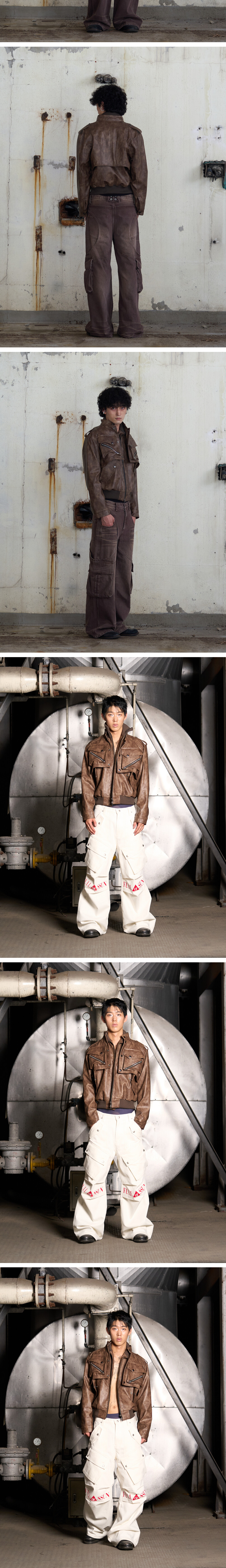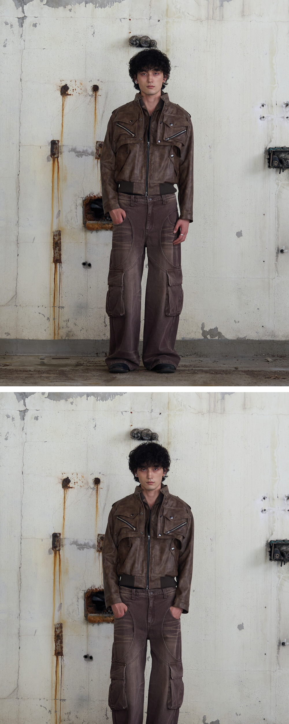 Full of Ssun Leather Cargo 3way Jacket Brown