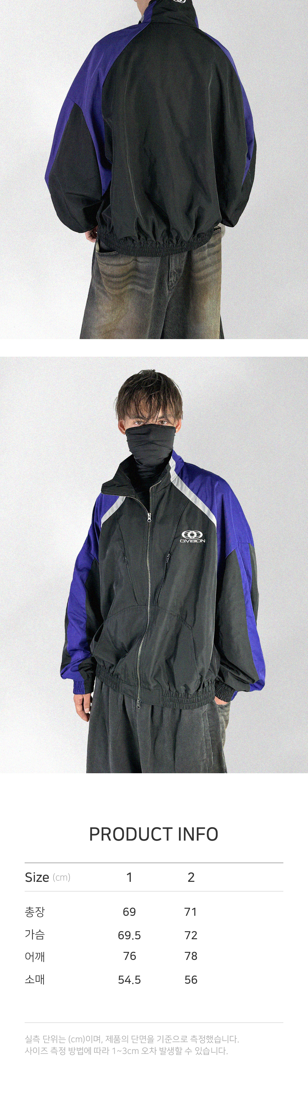 [PRODUCT INFORMATION] 제조국: 한국 (Made in KOREA) 소재: 폴리에스터 100% (Polyester 100%) -콘트라스트 패널 (Contrast color panels) -가슴과 목 부분의 비전 로고 자수 (Vision logo embroidered at chest and neck) -스포티 하이넥 카라 (Sporty high neck collar) -중량감있는 발수 원단 (Heavy water repellent fabric) -5:1 메쉬 안감 (5:1 Mesh lining) -투웨이 지퍼 (2Way zip-fastening) [Model Spec & Size] Man model is 181cm, and wearing a Size 2