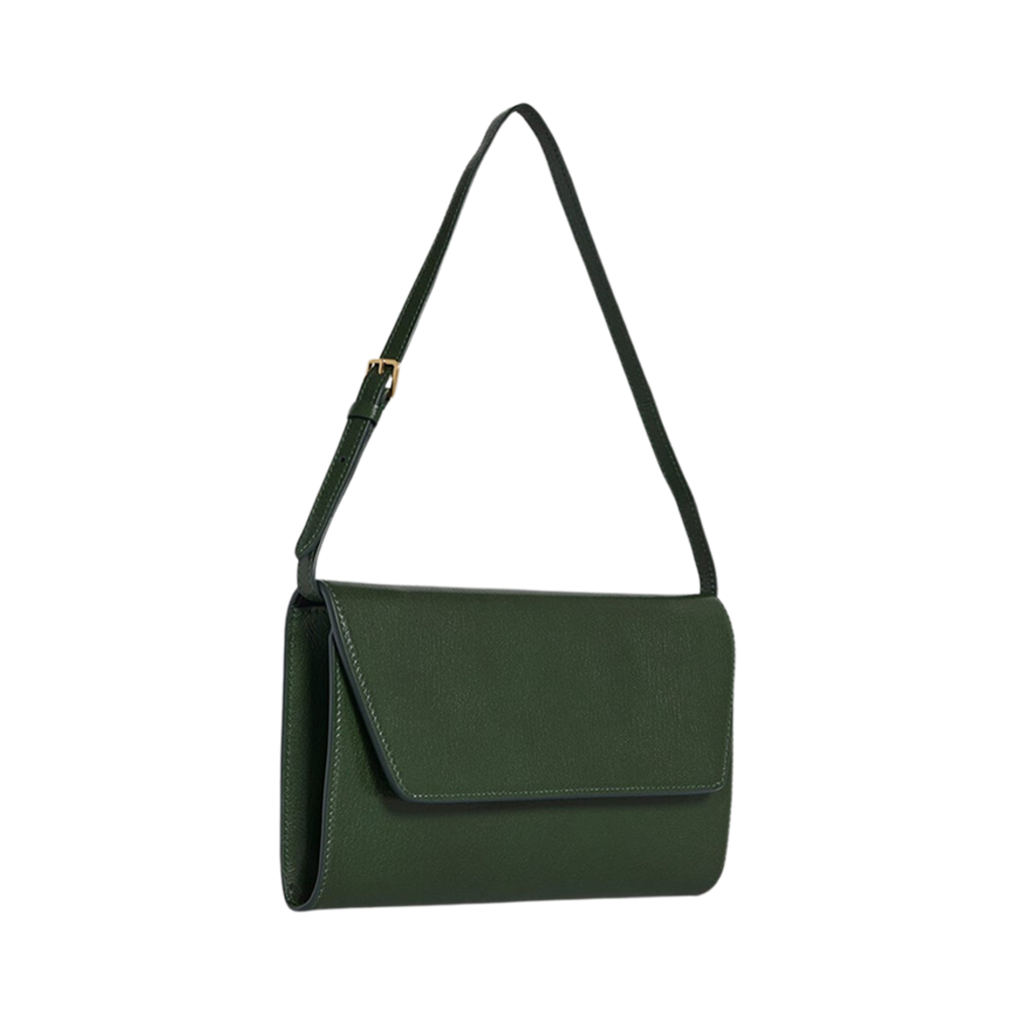The Row Evening Clutch in Smooth Goatskin Leather Seaweed Green