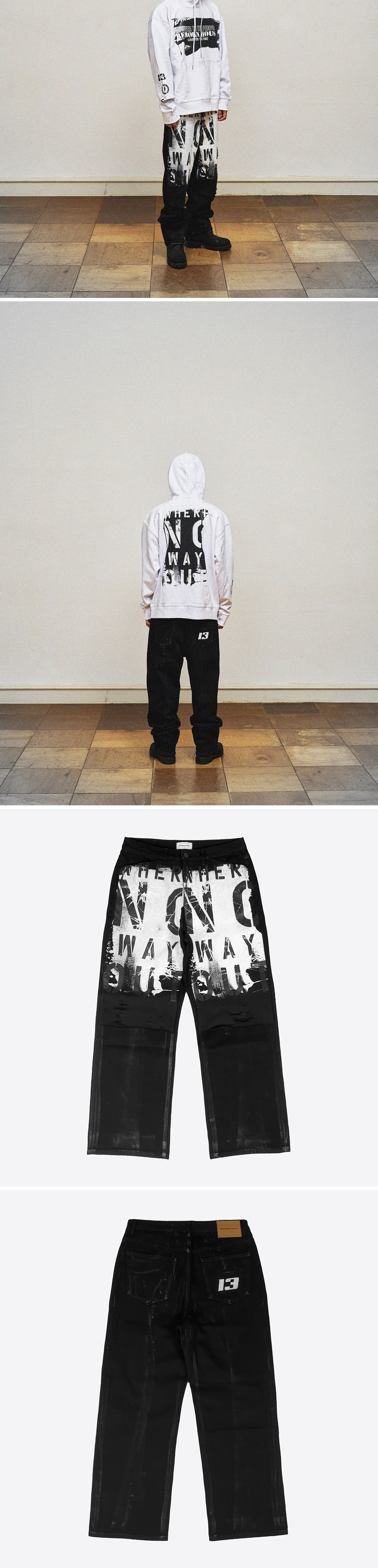 [KREAM 단독] 레저렉션13 페인티드 스웨트 믹스드 팬츠 블랙