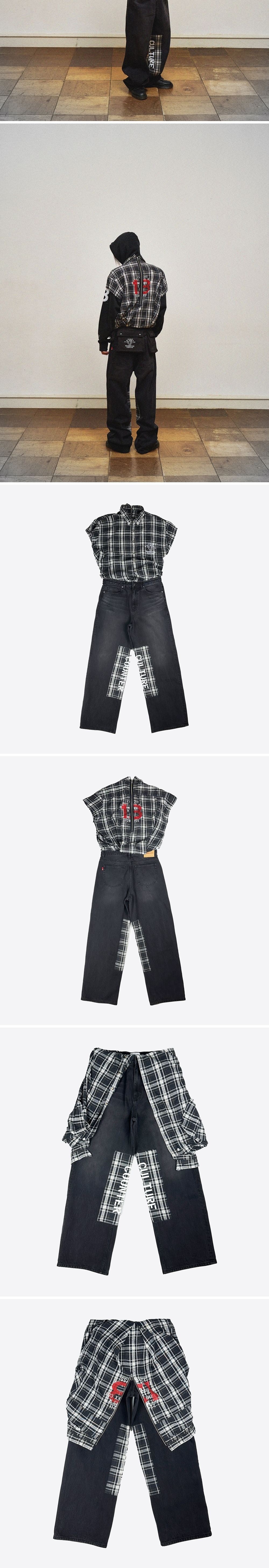 레저렉션13 리사이클 오버롤 데님 팬츠 블랙
