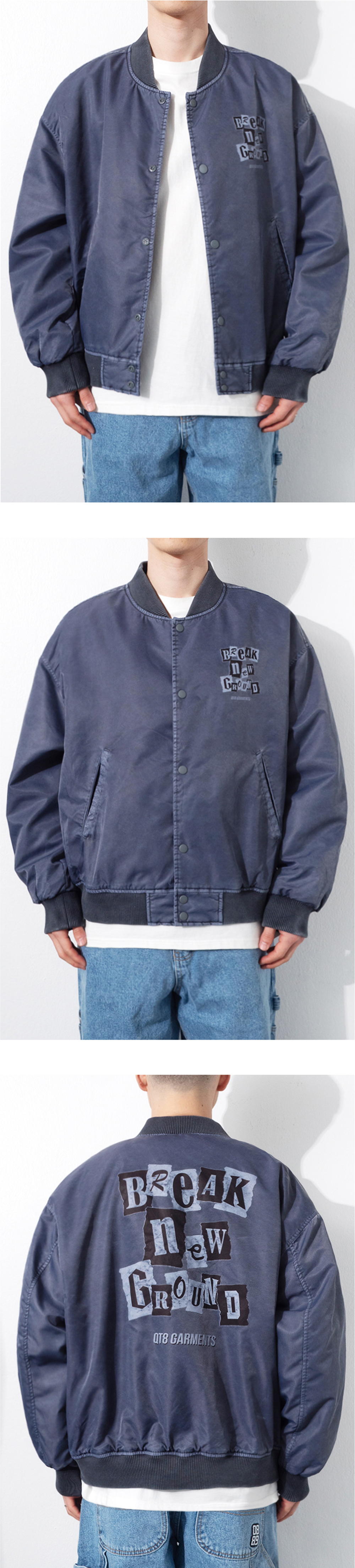 나일론 소재의 스타디움 자켓을 피그먼트 염색하여 빈티지한 컬러감과 세탁 시 수축현상을 최소화 하였습니다. 안감을 2oz 누빔 처리하여 적당한 두께감을 가지고있습니다. 봄,가을 모두 착용 가능한 간절기 아우터입니다.