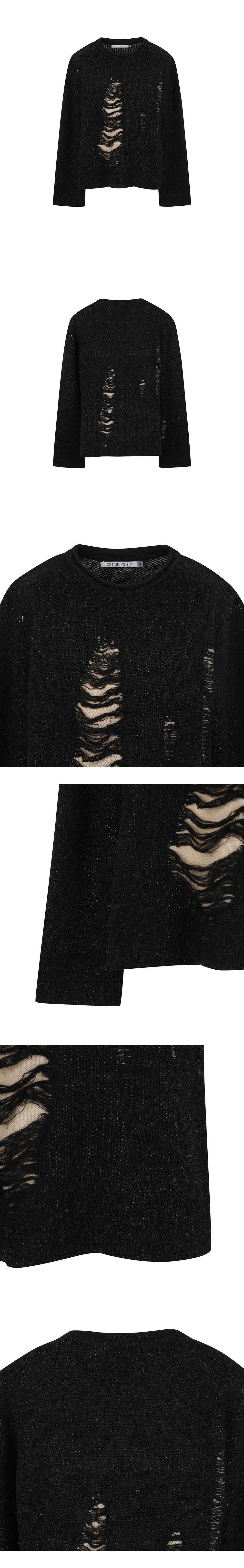 [KREAM 단독] Chiahung Su Double Layers Damaged Knitted Sweater Black - 24FW