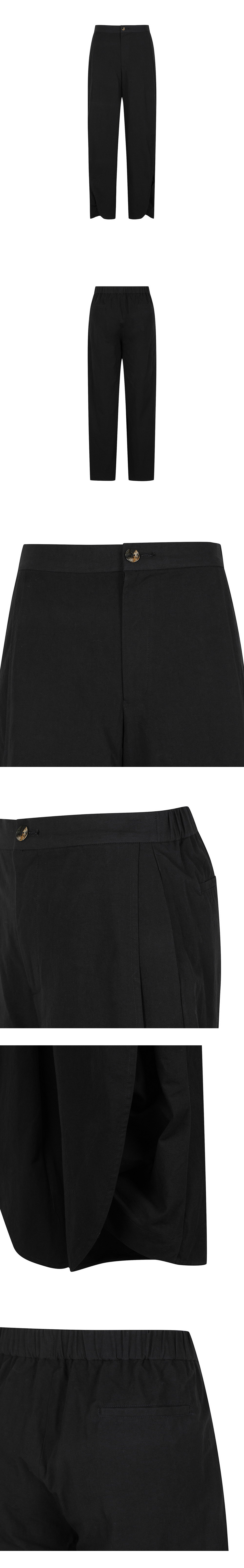 특유의 디테일로 우아하고 입체적인 실루엣을 연출할 수 있는 치아헝 수의 플레어 트라우저입니다. - 곡선형의 파츠가 전면에 결합된듯한 디자인 - 허리 뒷면 밴딩 디테일로 편안한 착용감 - 곡선형의 패턴과 밑단 턱 디테일로 입체적인 실루엣