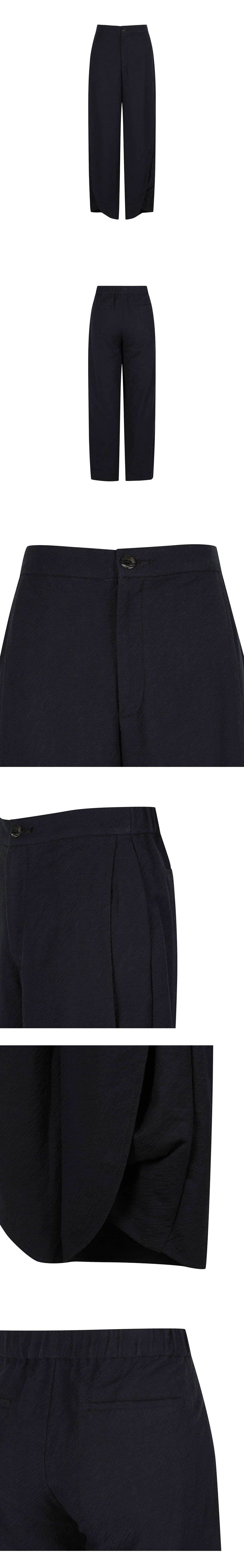 특유의 디테일로 우아하고 입체적인 실루엣을 연출할 수 있는 치아헝 수의 플레어 트라우저입니다. - 곡선형의 파츠가 전면에 결합된듯한 디자인 - 허리 뒷면 밴딩 디테일로 편안한 착용감 - 곡선형의 패턴과 밑단 턱 디테일로 입체적인 실루엣