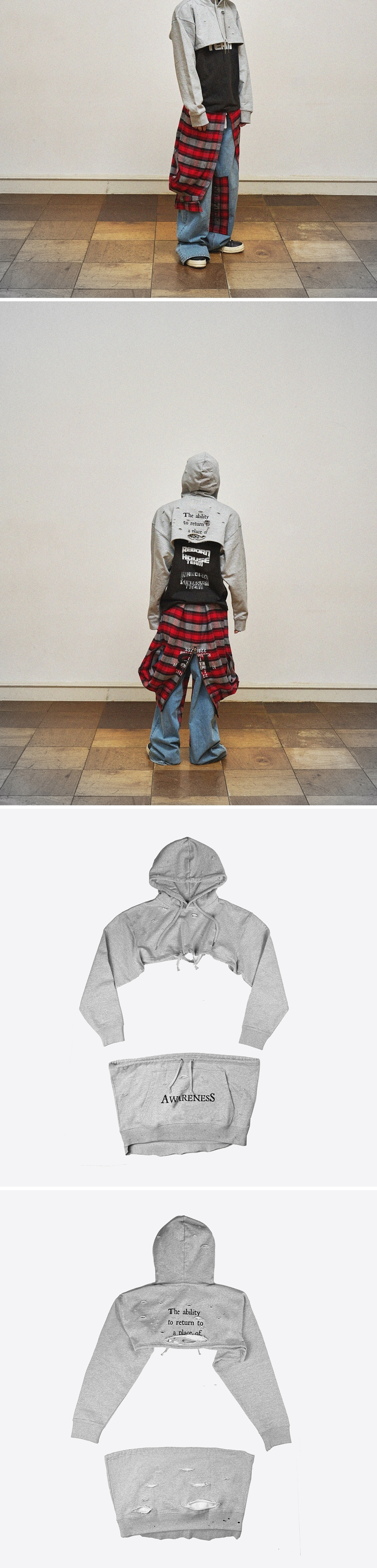 레저렉션13 디테쳐블 빈티지 후드 멜란지 그레이