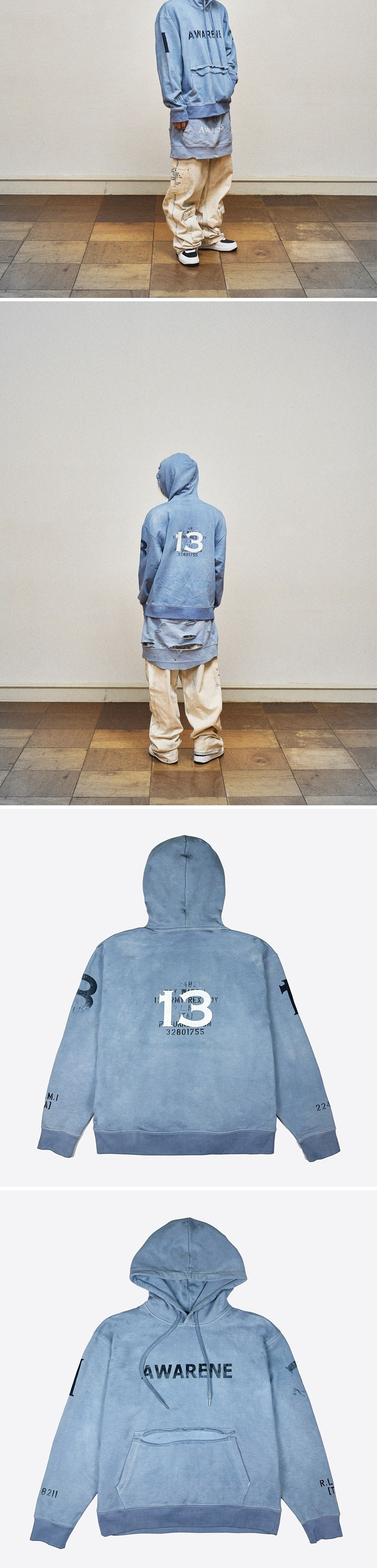 레저렉션13 빈티지 프린팅 후드 빈티지 인디고