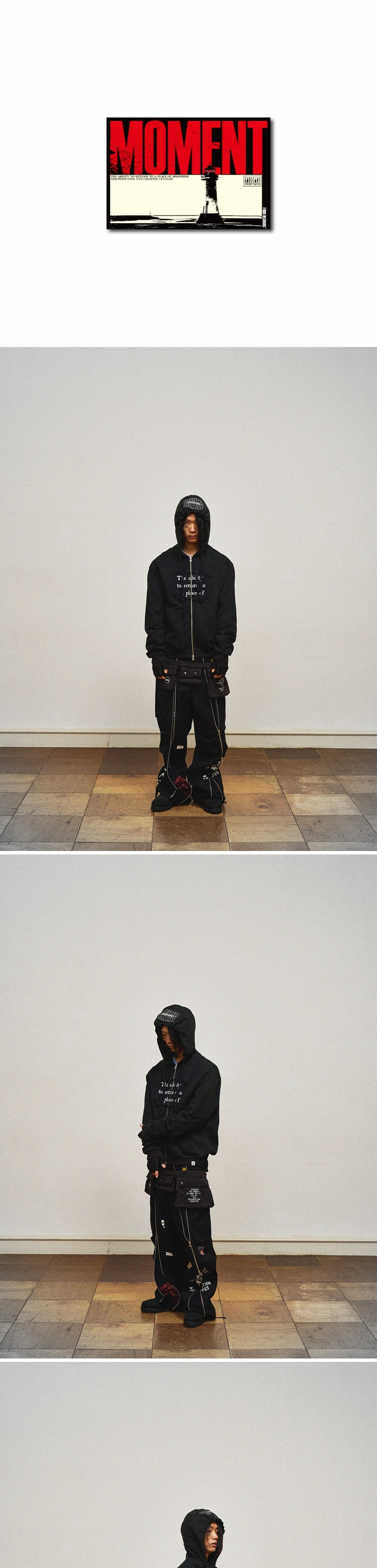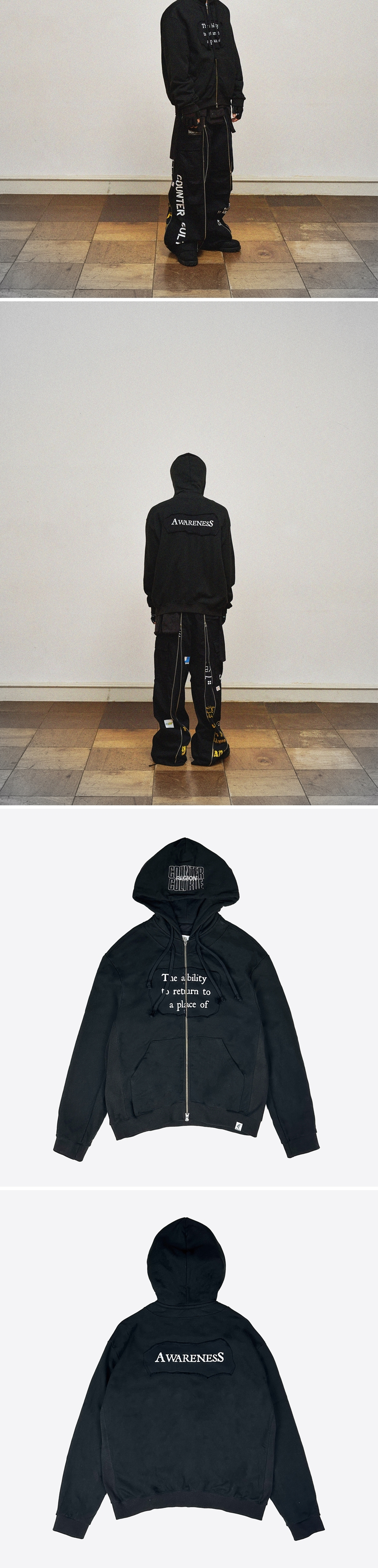 레저렉션13 패치워크 투웨이 집업 후드 블랙