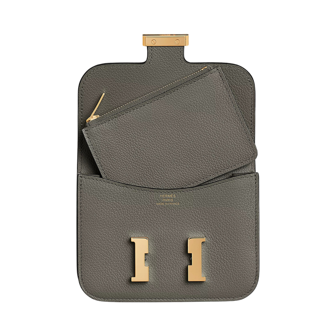 에르메스 콘스탄스 슬림 지갑 에버컬러 & 골드 하드웨어 그리 메이어