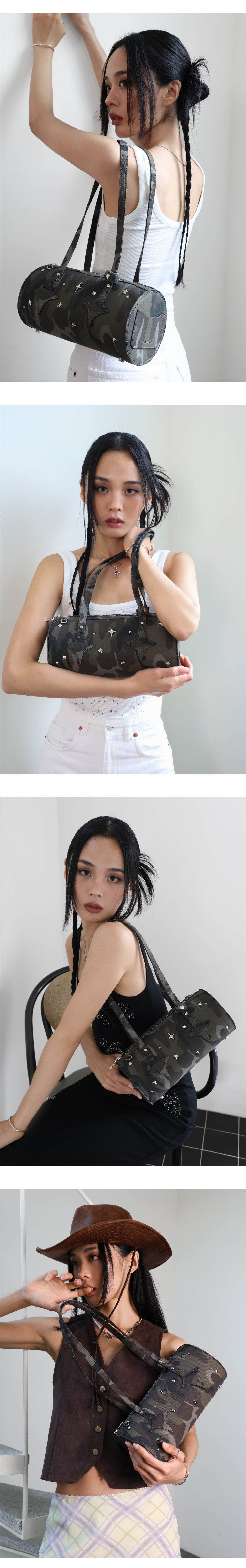 포어필 ‘sparkle star’라인의 웨스턴 무드가 담긴 스터드 숄더백 입니다. 비 정형화된 패턴으로 배열된 장식들은 밤하늘의 별을 상징하며, 독특한 매력을 더합니다. 숄더로 사용할때 가장 편안하게 착용 가능하도록 최적의 사이즈를 구상하였습니다. 밑판에 스터드 장식이 있어 마찰에 의한 손상이 적으며 안정적 입니다. 가방 양 옆에 카드포켓이 있어 편리하게 카드 수납이 가능합니다.
