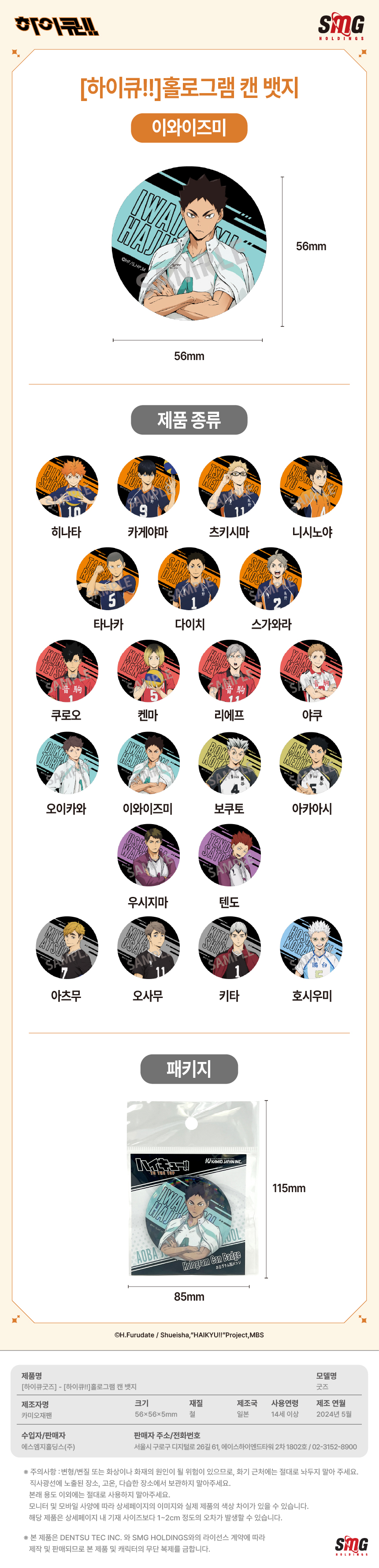 하이큐 홀로그램 캔 뱃지 이와이즈미