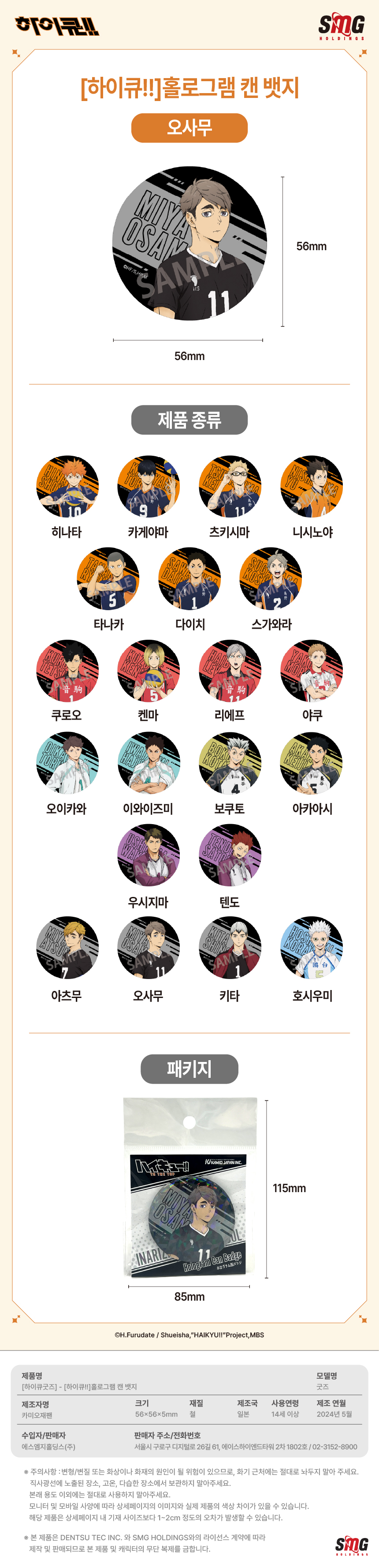 하이큐 홀로그램 캔 뱃지 미야 오사무