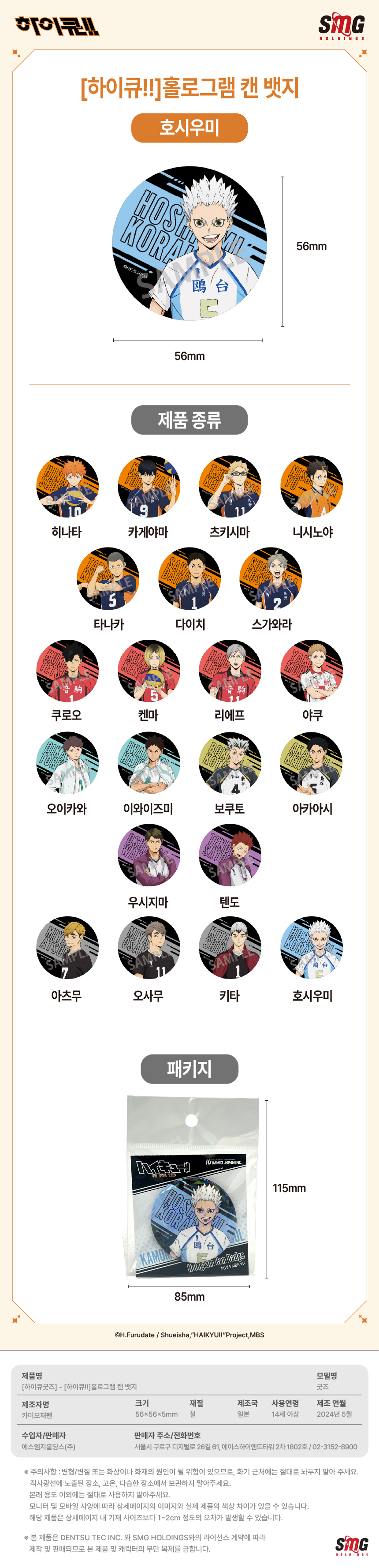 하이큐 홀로그램 캔 뱃지 호시우미