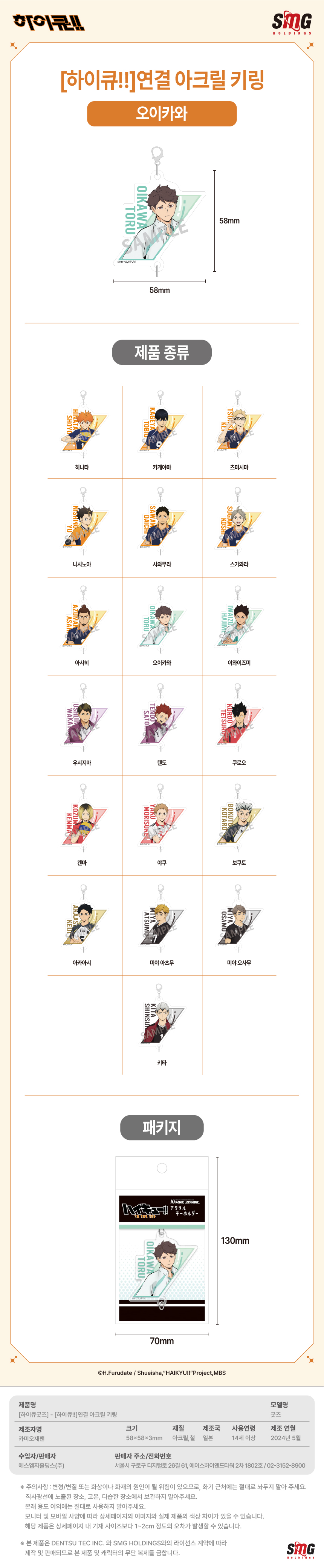 하이큐 연결 아크릴 키링 오이카와