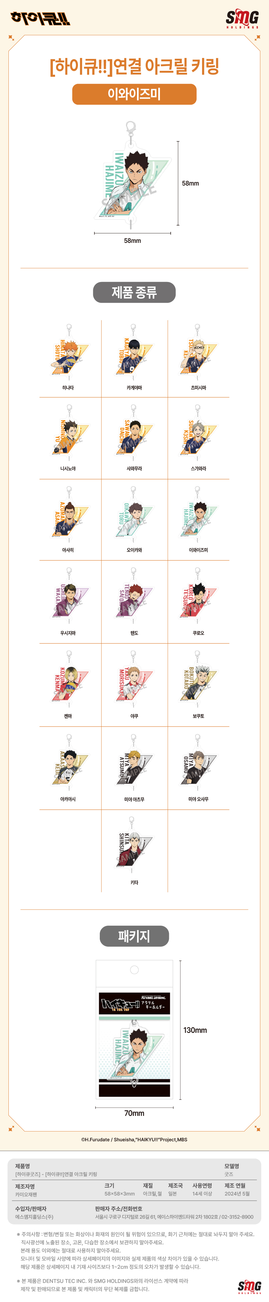 하이큐 연결 아크릴 키링 이와이즈미