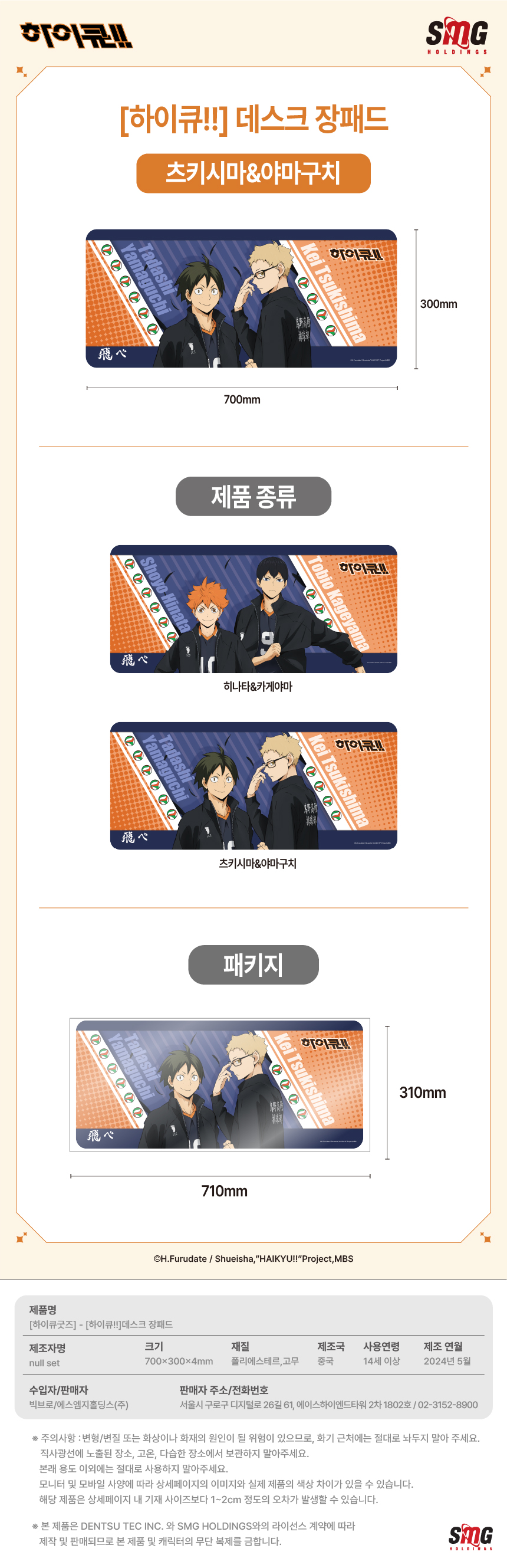 하이큐 데스크 장패드 츠키시마&야마구치