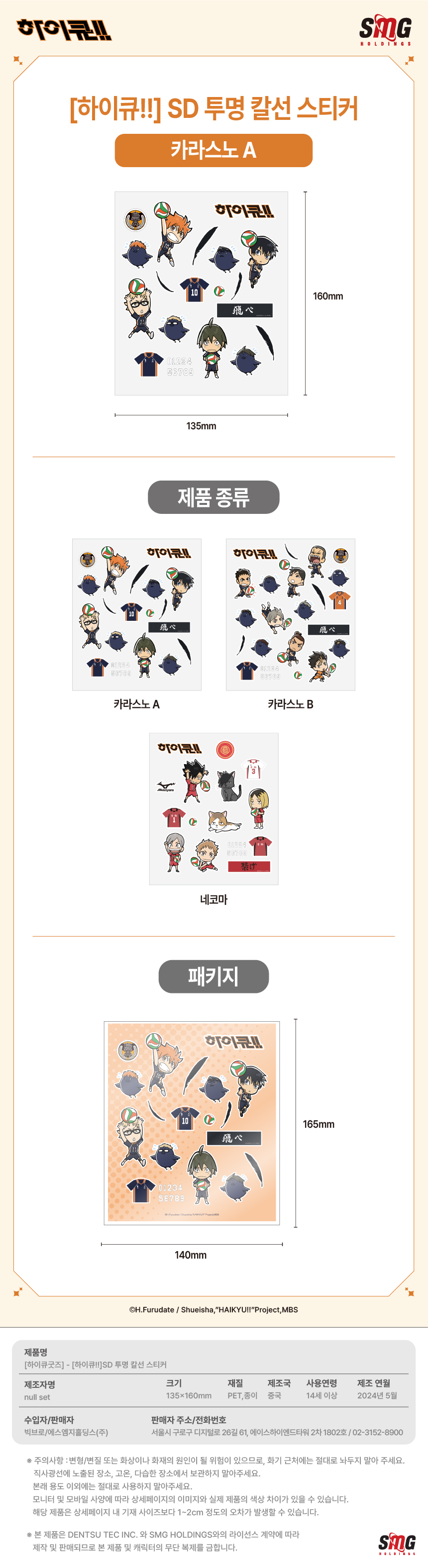 하이큐 SD 투명 칼선 스티커 카라스노 A