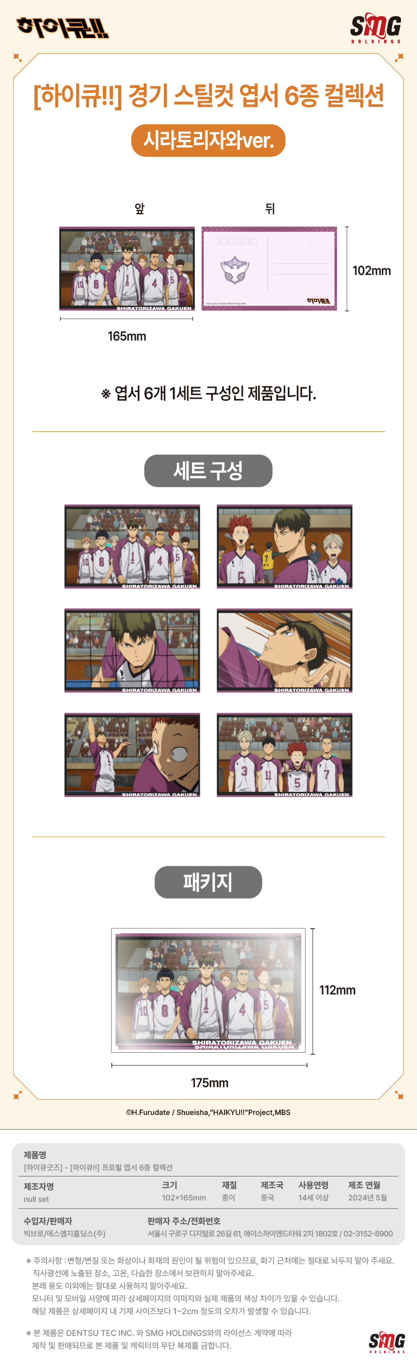 하이큐 경기 스틸컷 엽서 6종 컬렉션 시라토리자와 ver.
