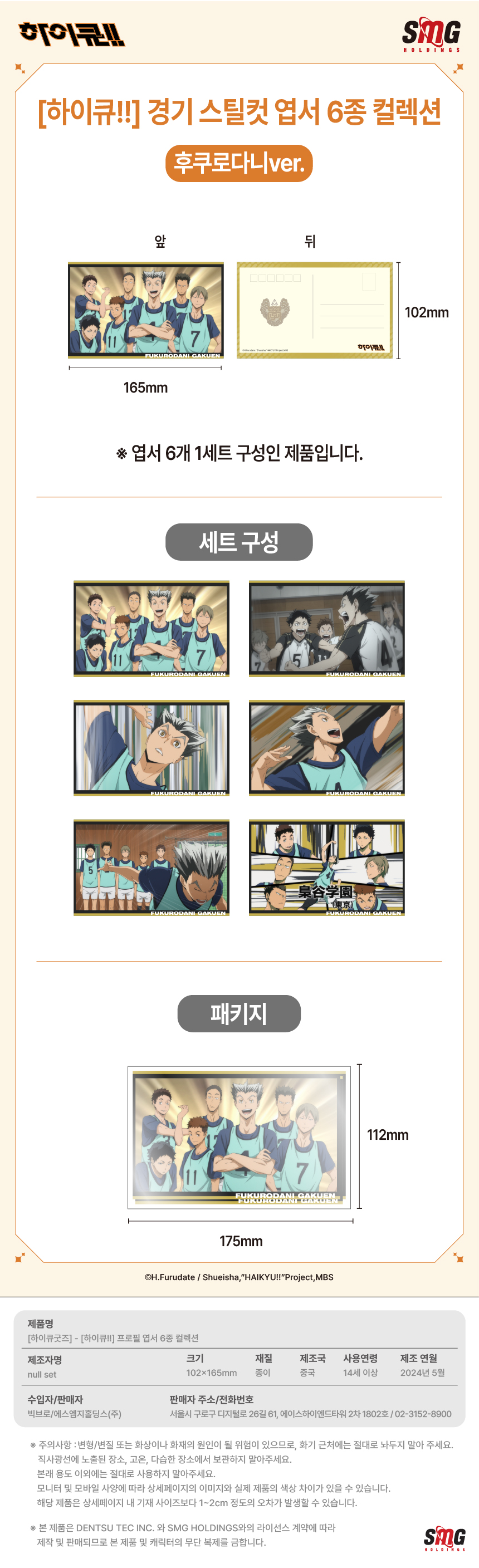 하이큐 경기 스틸컷 엽서 6종 컬렉션 후쿠로다니 ver.