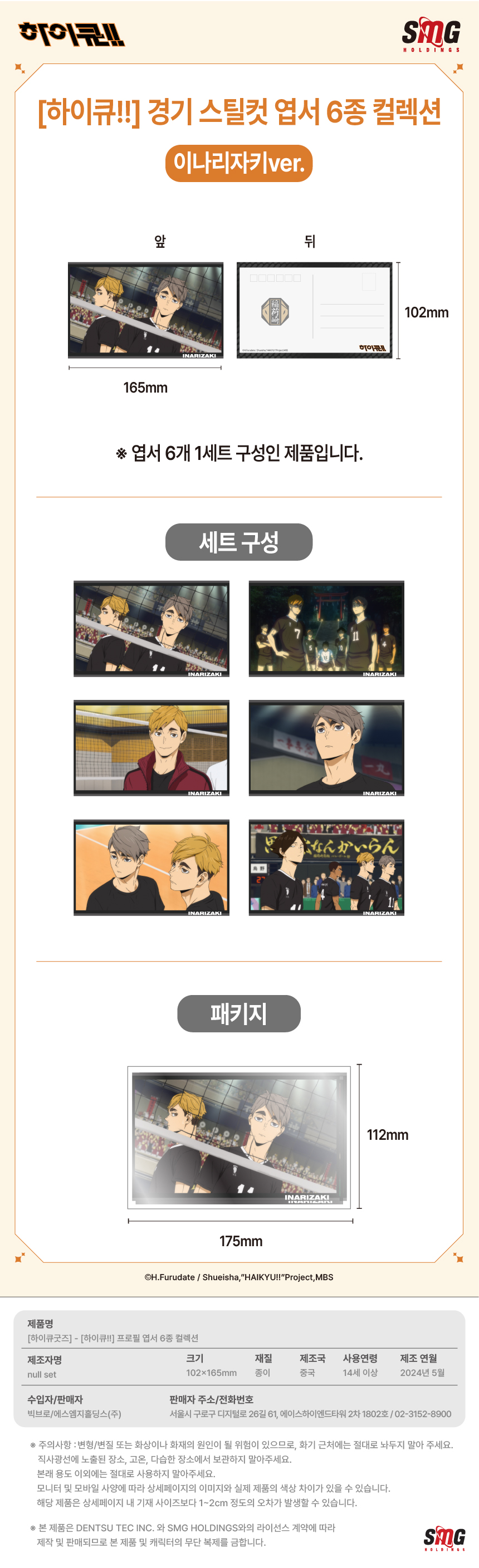 하이큐 경기 스틸컷 엽서 6종 컬렉션 이나리자키 ver.
