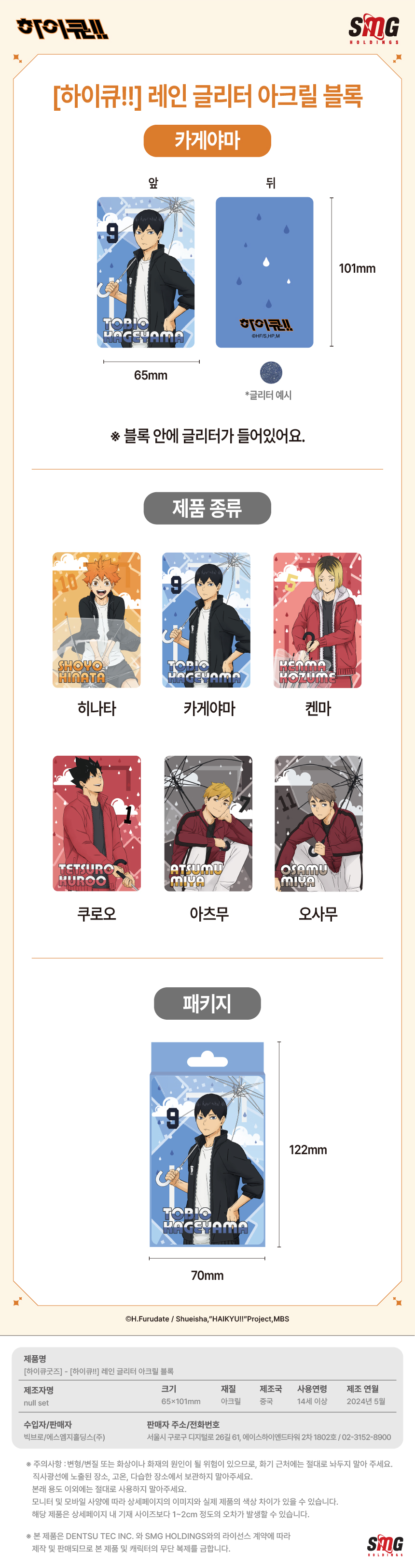 하이큐 레인 글리터 아크릴 블록 카게야마