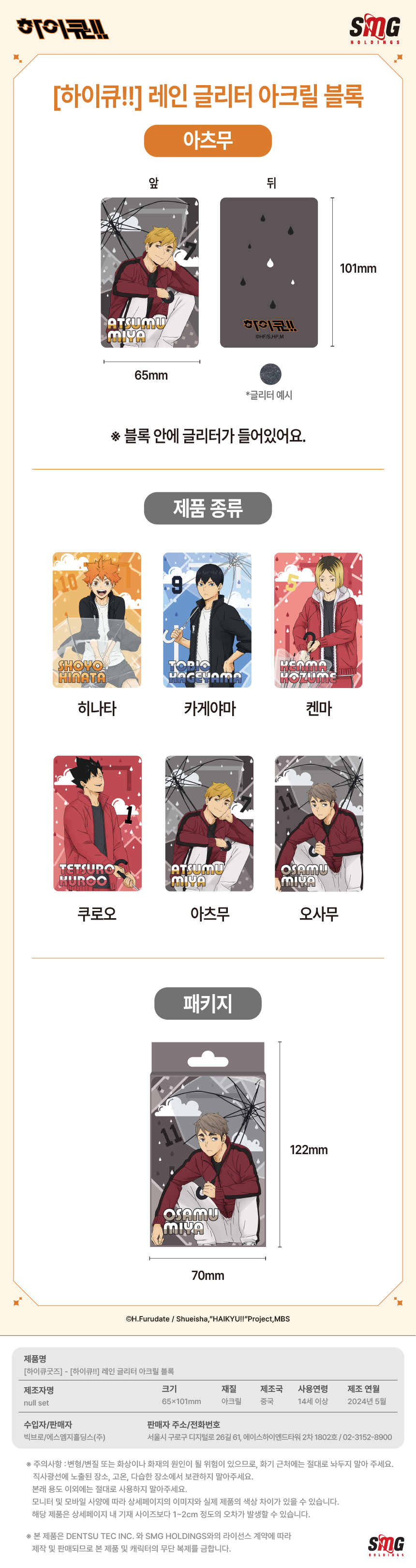 하이큐 레인 글리터 아크릴 블록 미야 오사무