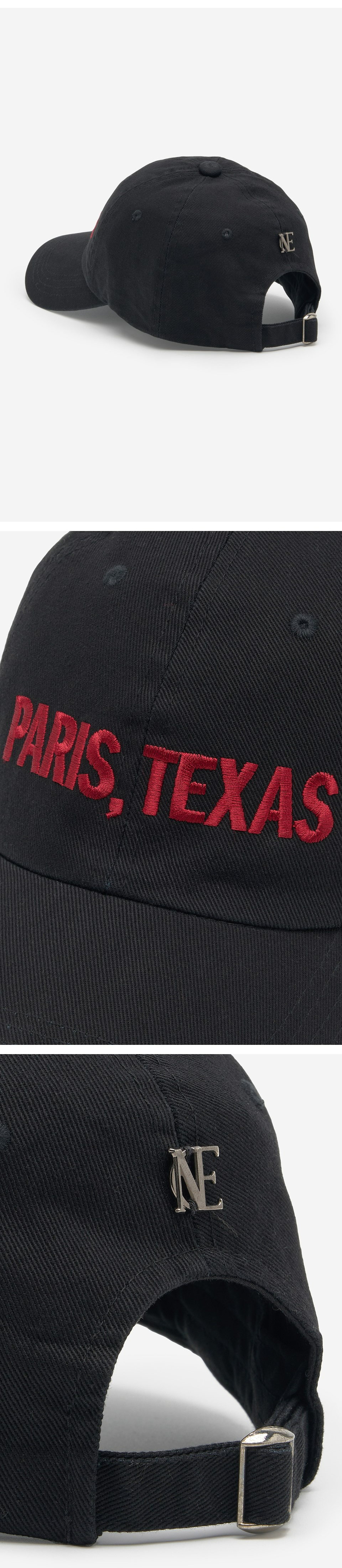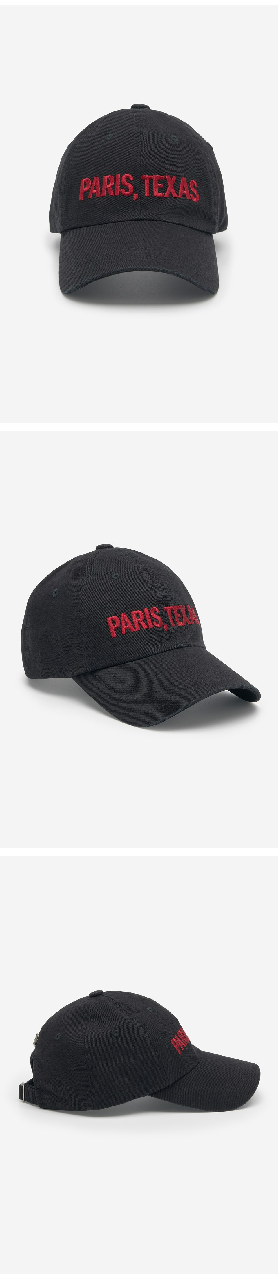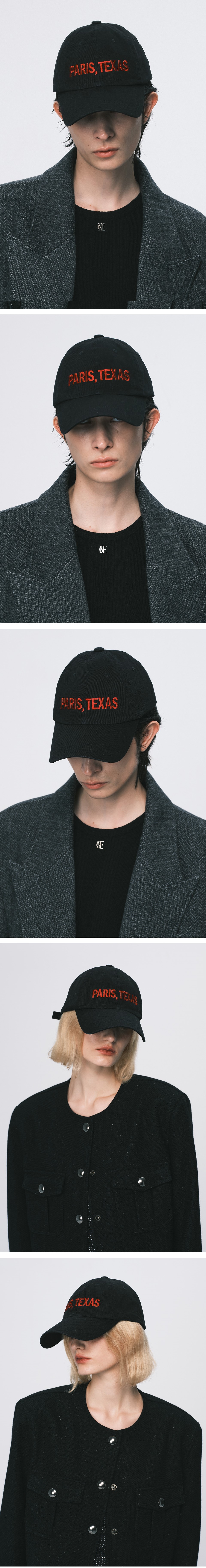 시즌 컨셉 PARIS, TEXAS 문구가 자수처리된 볼캡으로, 심플한 디자인에 컬러 포인트로 다양한 착장에 쉽게 매치할 수 있는 아이템입니다.