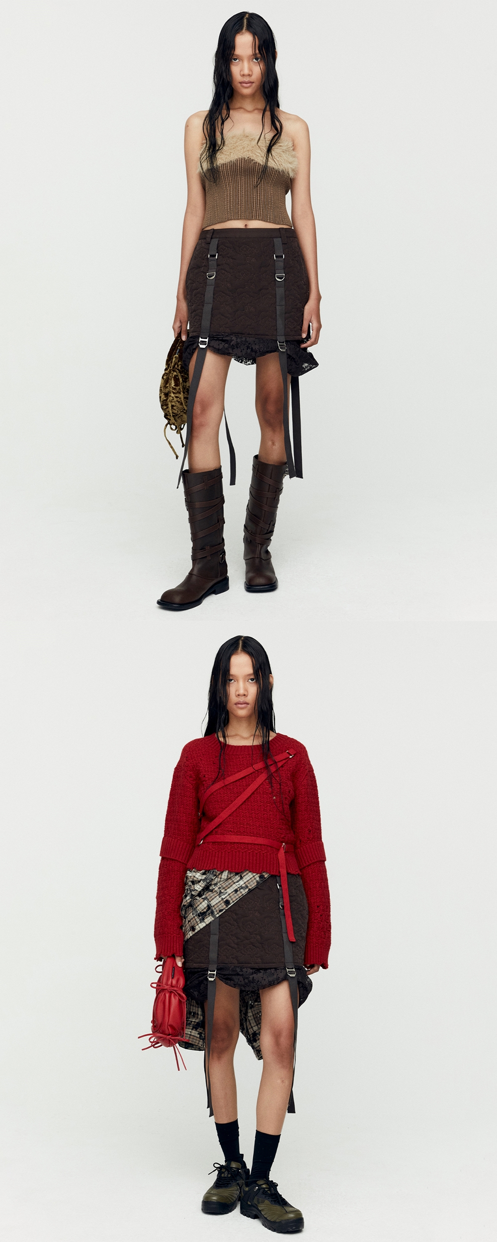 ADSB 앤더슨벨 우먼 엠브로이더리 패디드 스커트 다크 브라운