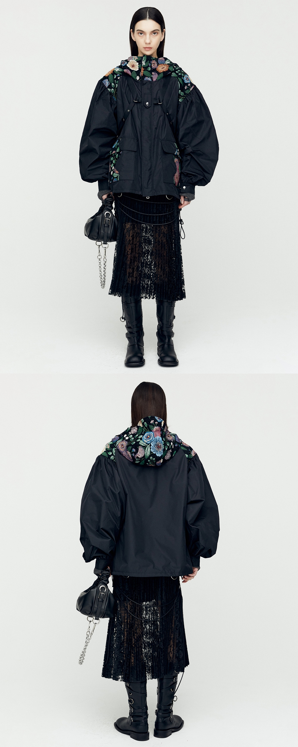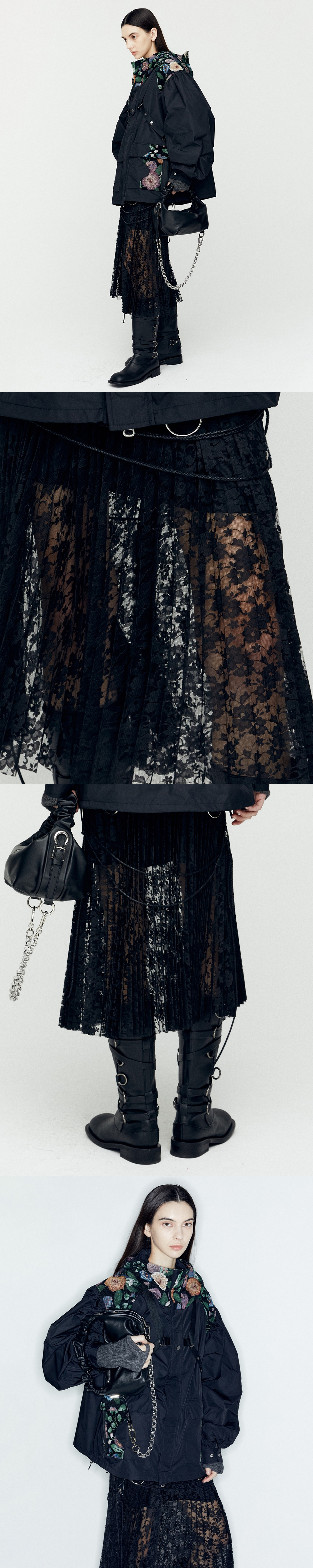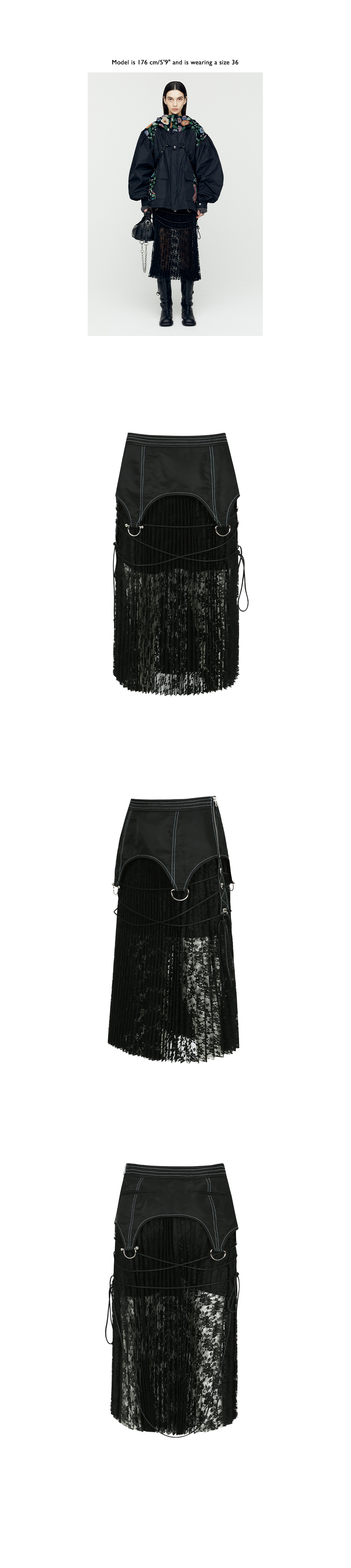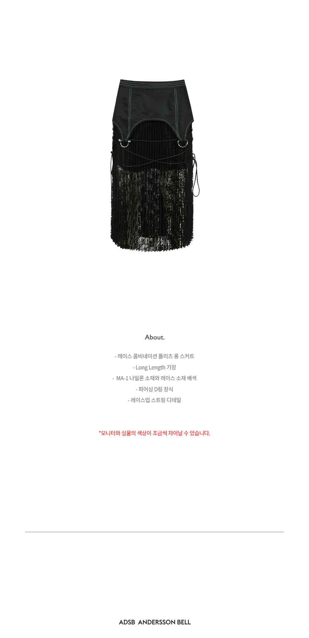 ADSB 앤더슨벨 우먼 레이스 콤비네이션 플리츠 롱 스커트 블랙