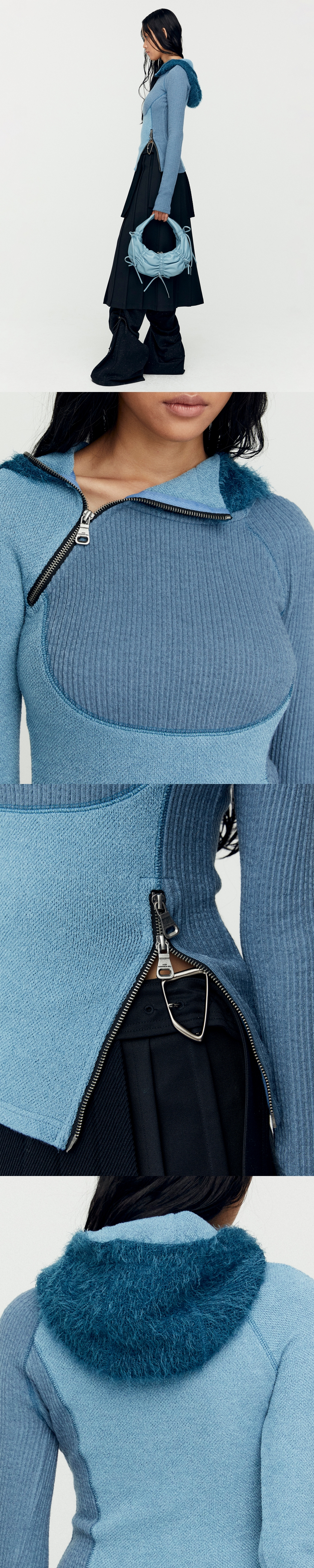 ADSB Andersson Bell Women Essential Tight Ribbed Combination Hoodie Blue