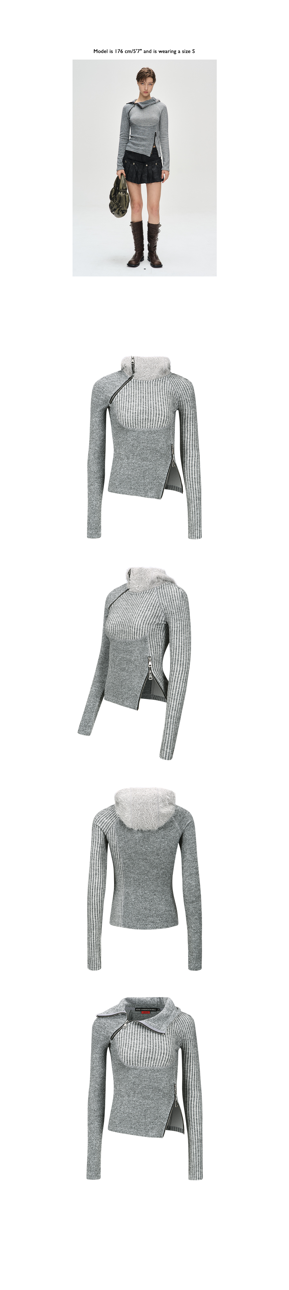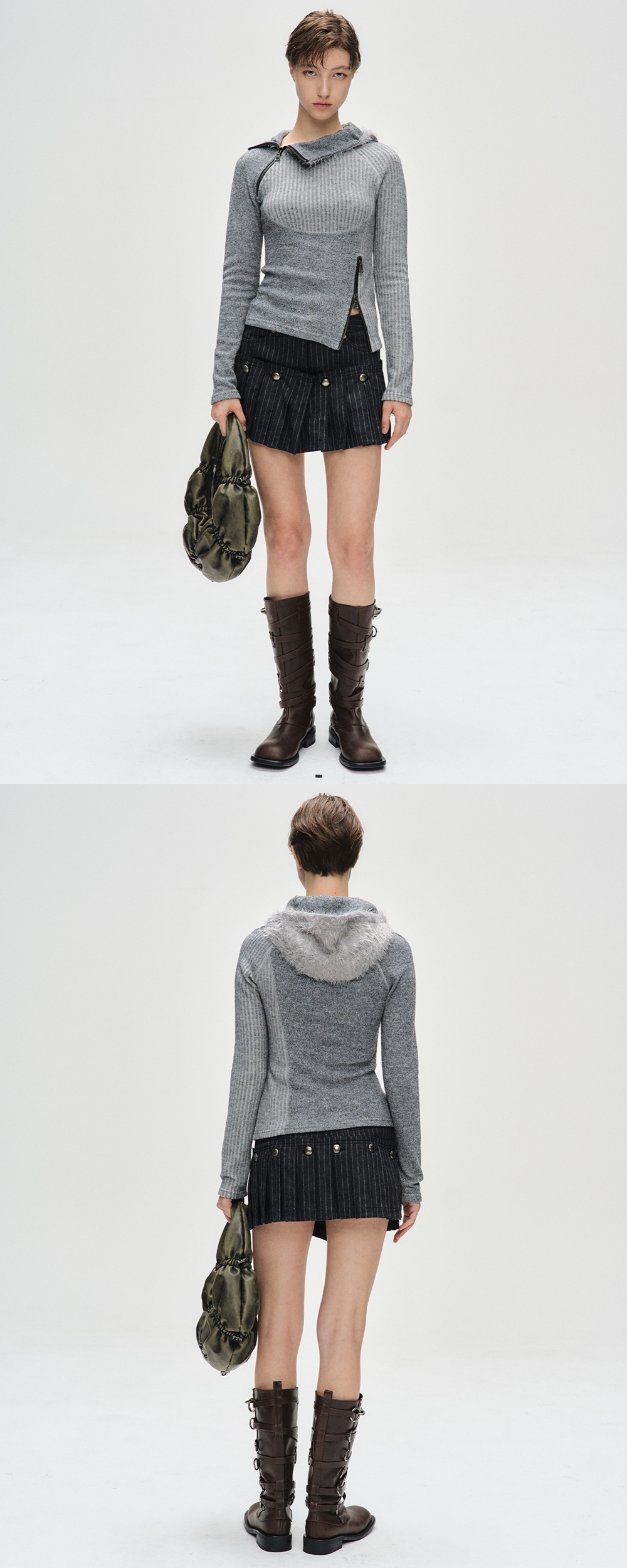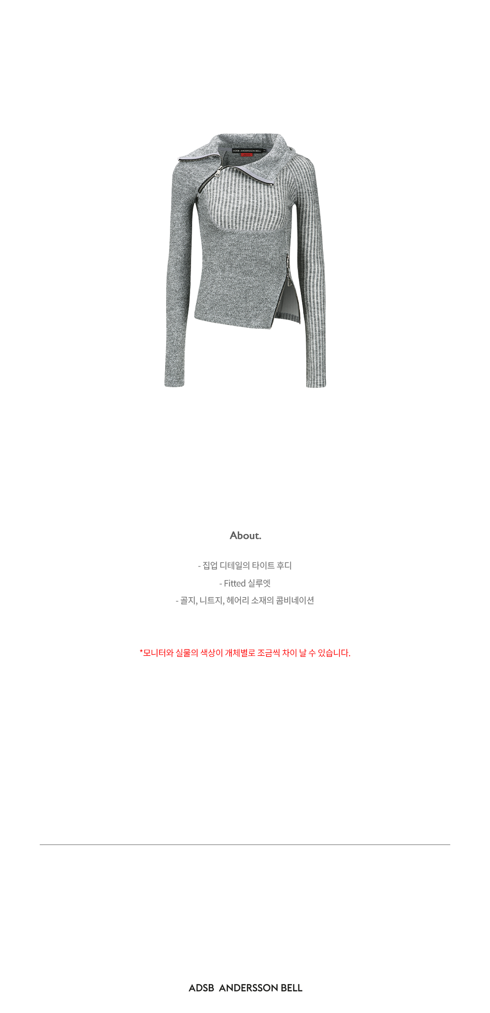 ADSB 앤더슨벨 우먼 에센셜 타이트 립 콤비네이션 후드 멜란지 그레이