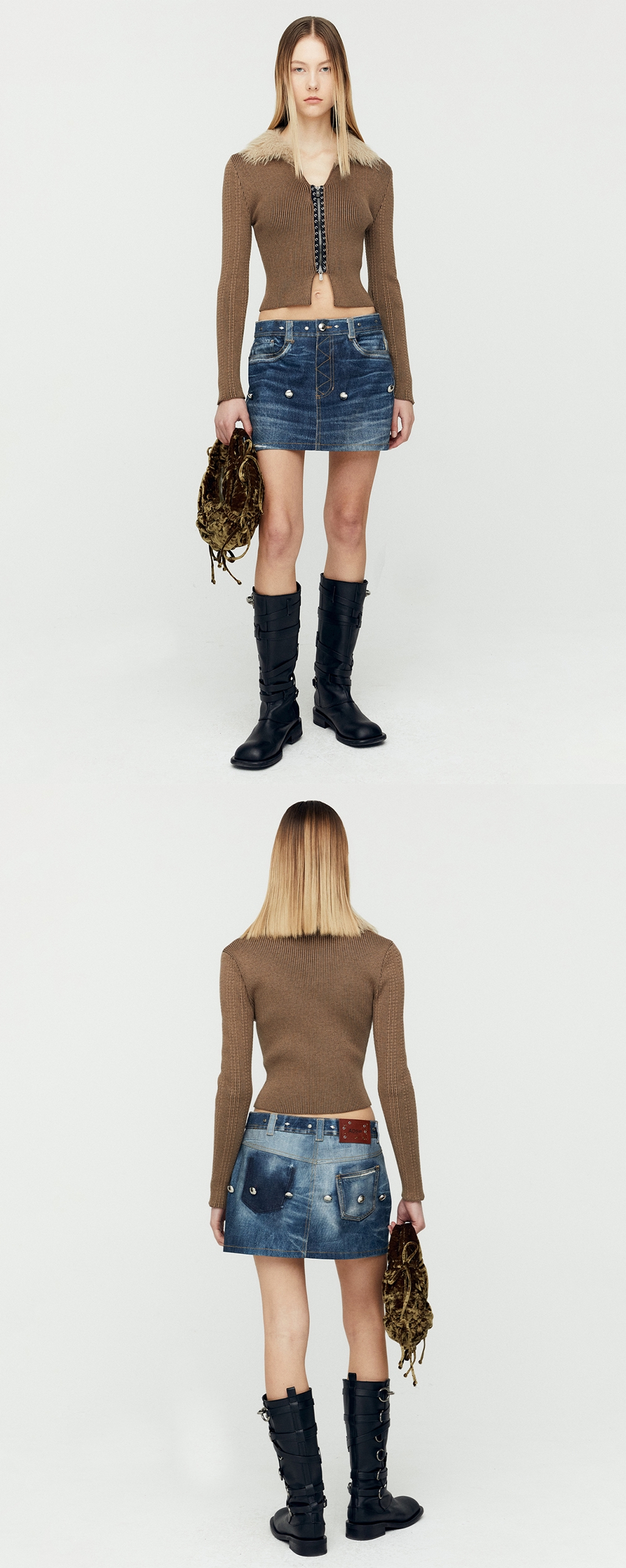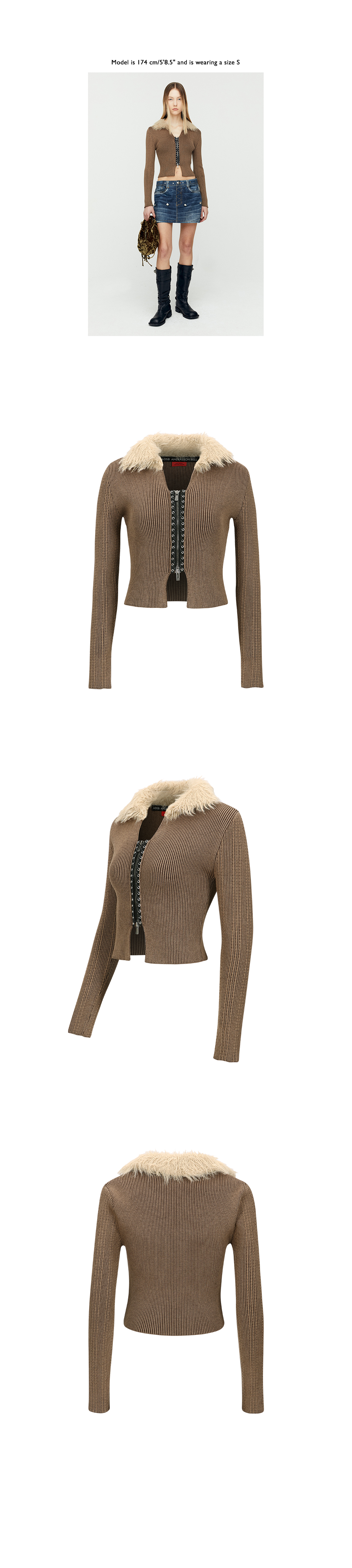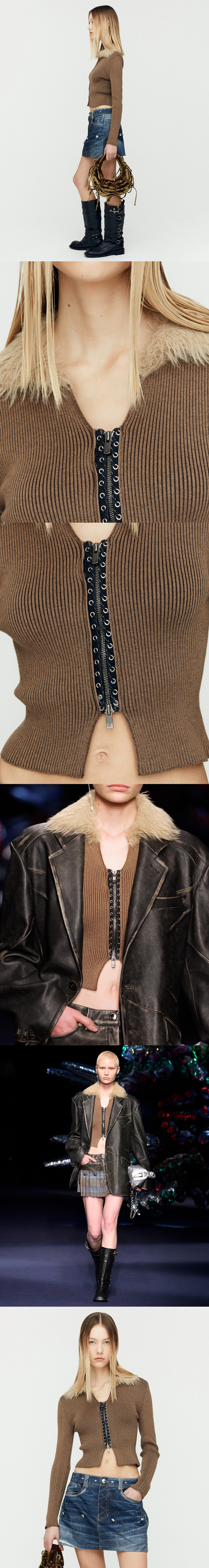 ADSB 앤더슨벨 우먼 레이스업 니트 가디건 브라운