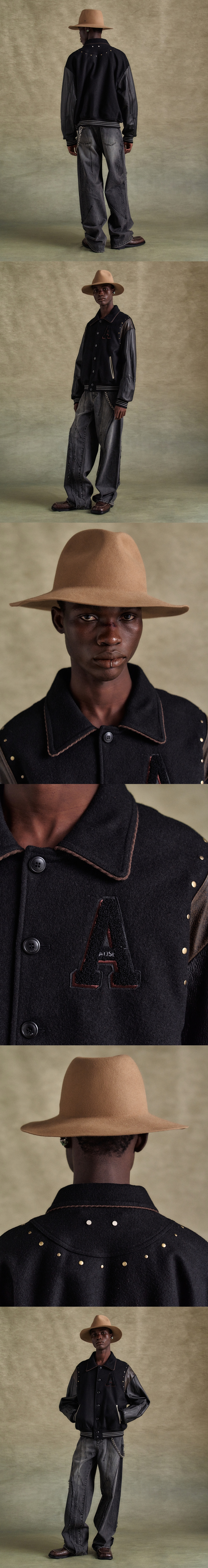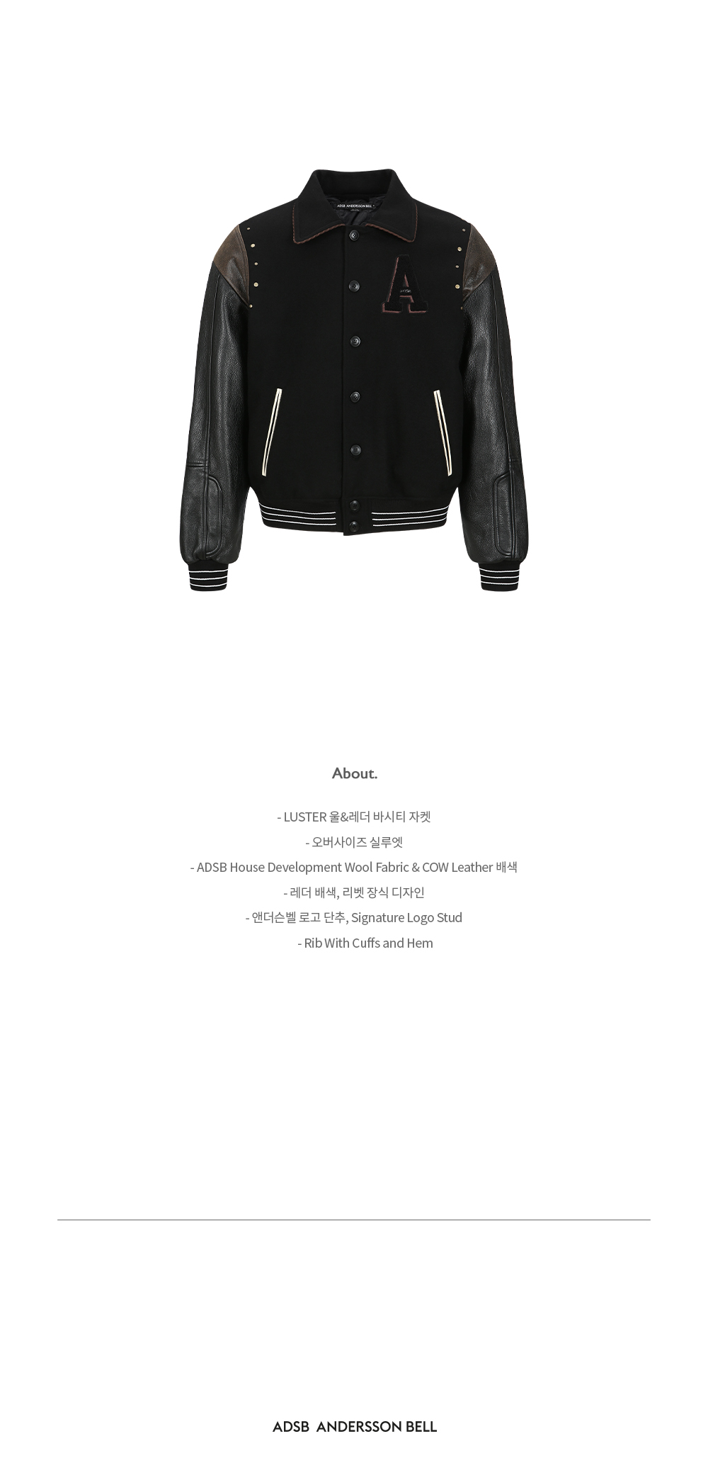 ADSB 앤더슨벨 A 패치 울 & 레더 바시티 자켓 블랙