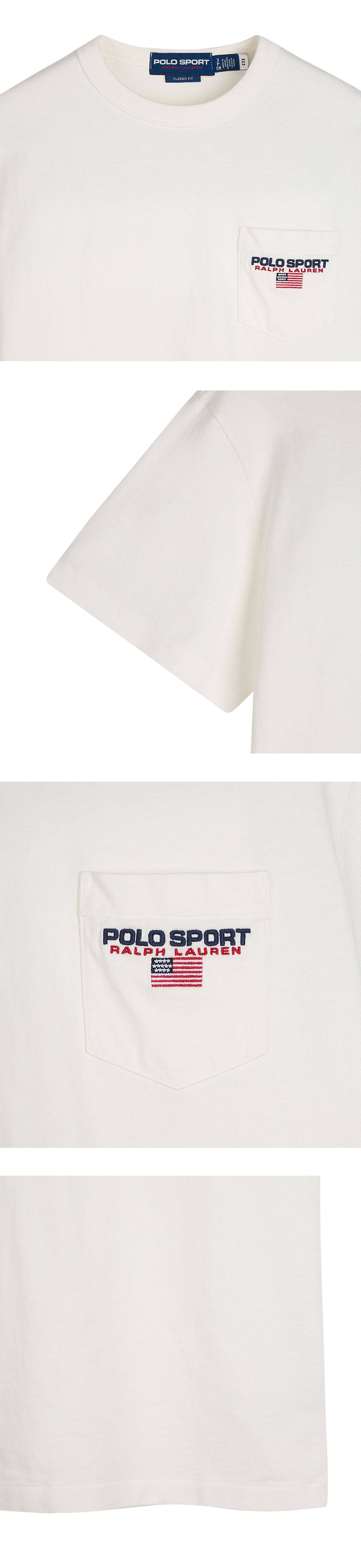 < KREAM은 랄프로렌 코리아 공식 파트너사로 모든 상품은 랄프로렌 코리아(유)에서 공급받은 정식 수입 제품입니다 > 클래식한 원포켓 티셔츠에 로고 자수가 더해진 폴로 랄프 로렌의 폴로 스포츠 포켓 티셔츠입니다. - 전면 좌측 패치 포켓 - 폴로 스포츠 로고 및 성조기 자수 - 소매 및 밑단 싱글 스티치 마감 - 클래식 핏