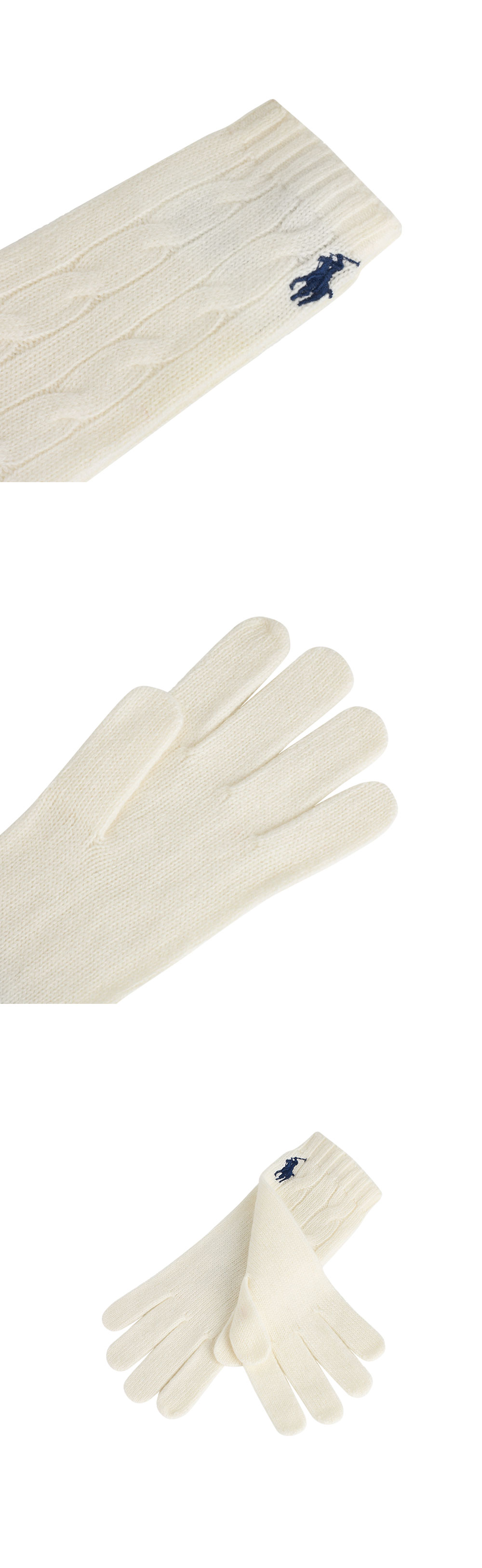 < KREAM은 랄프로렌 코리아 공식 파트너사로 모든 상품은 랄프로렌 코리아(유)에서 공급받은 정식 수입 제품입니다 > 케이블 니트 짜임에서 영감을 받은 폴로 랄프 로렌의 울 캐시미어 글러브입니다. - 왼쪽 커프스에 시그니처 포니 자수