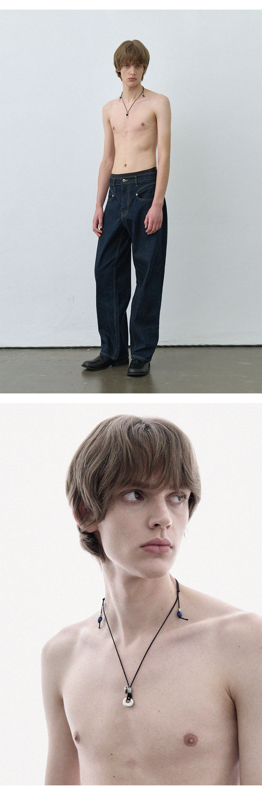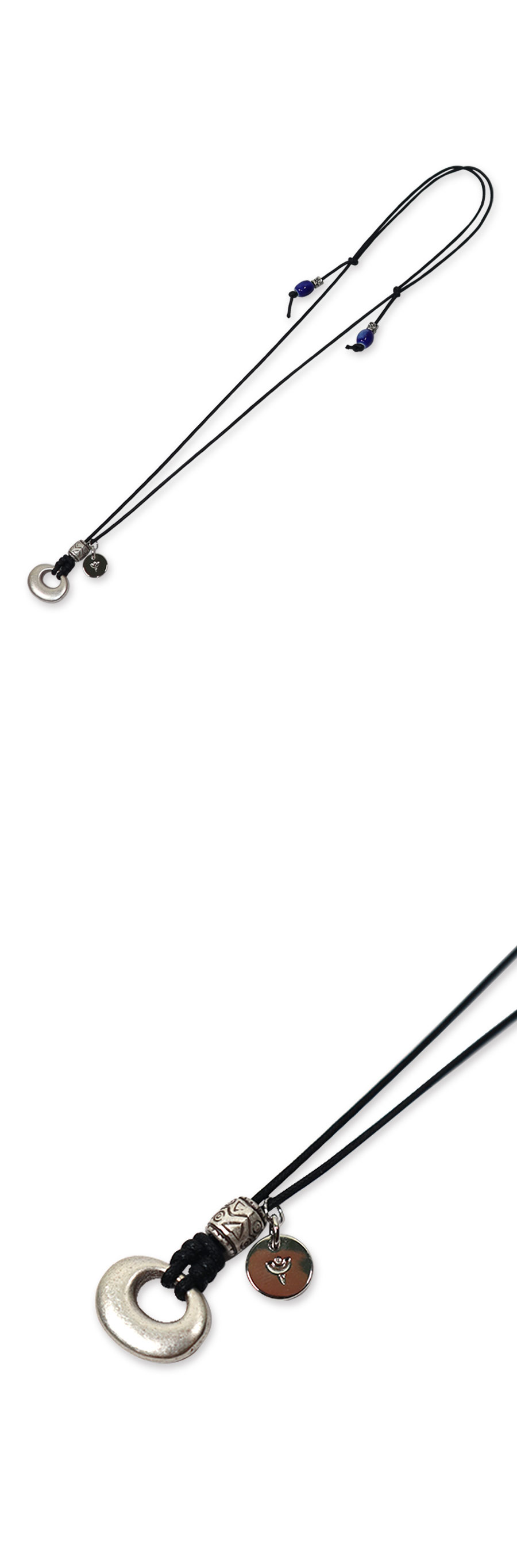 Material Pendant : Zinc alloy Strap : Polyester 100% Colour : Black - Adjustable strap - Zinc alloy pendant - Cobalt blue point beads detail - Logo point pendant - 팬던트 포인트의 스트랩 네클리스