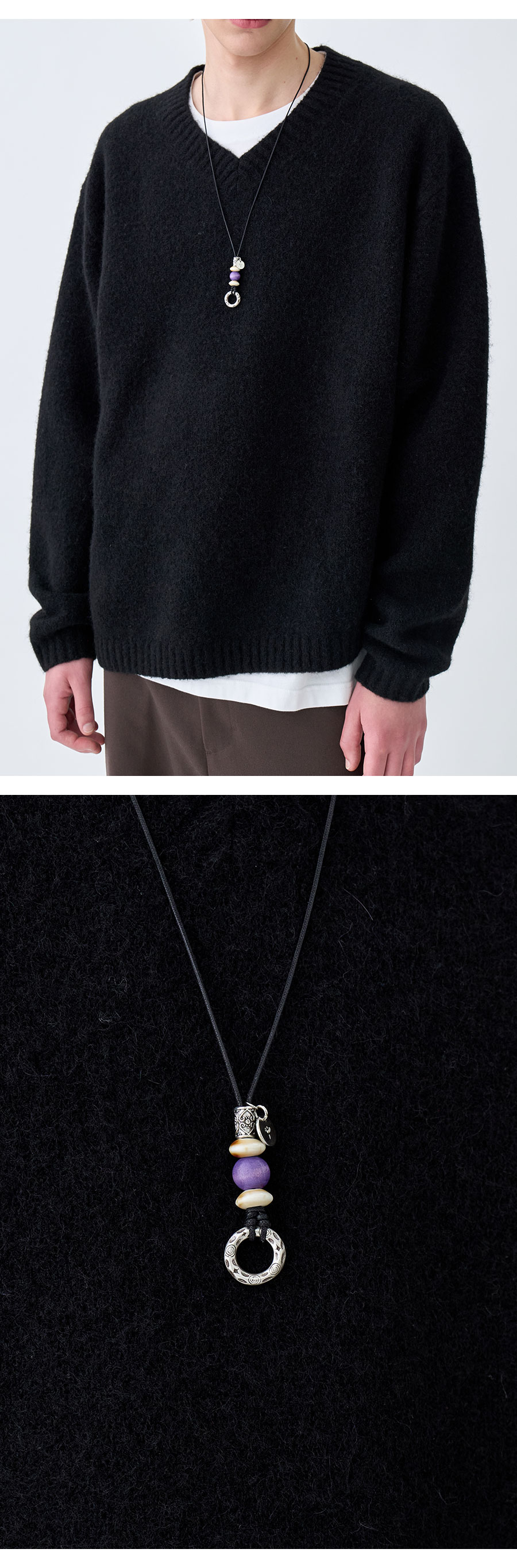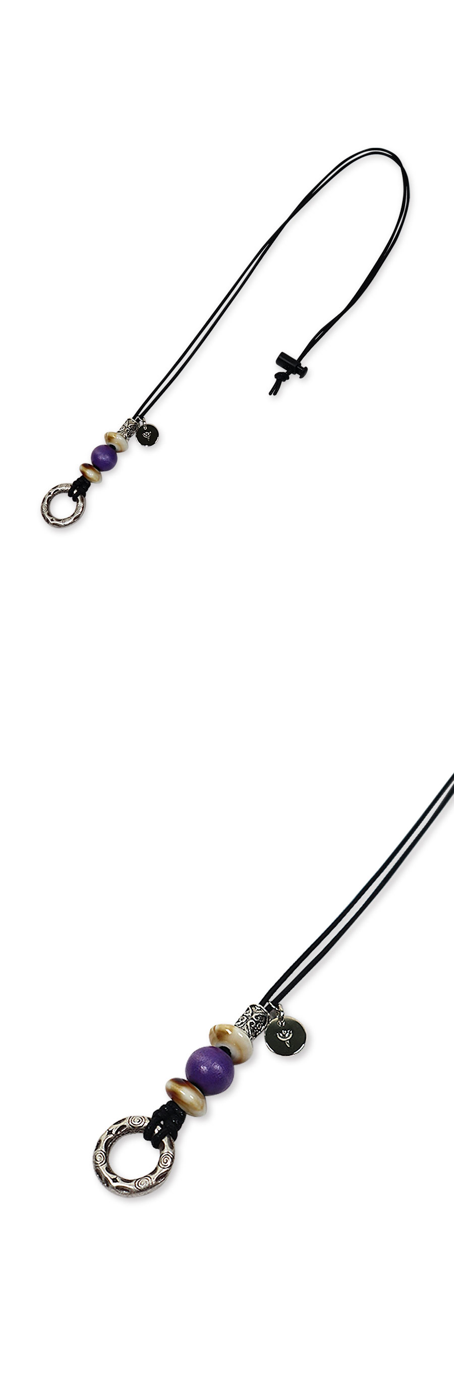 Material O-Ring : Zinc alloy Strap : Polyester 100% Beads : Natural Gemstone Colour : Purple ivory - Adjustable stopper - Zinc alloy O-ring point detail - Color point beads detail - Logo point pendant - 오링 타입의 스트랩 네클리스