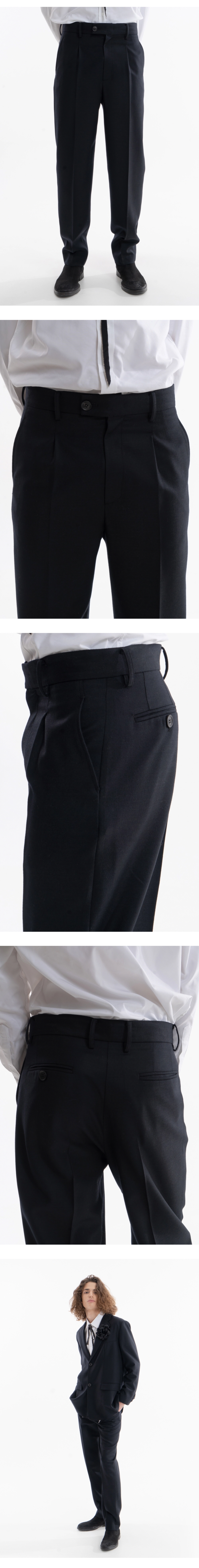 이프엘스 프리미엄 울 100% 원턱 스트레이트 울 슬랙스 블랙