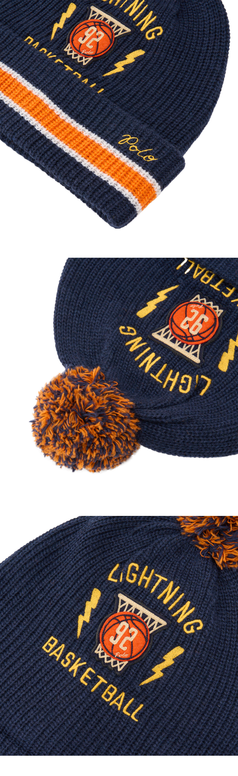 < KREAM은 랄프로렌 코리아 공식 파트너사로 모든 상품은 랄프로렌 코리아(유)에서 공급받은 정식 수입 제품입니다 > 바시티 스타일의 농구공 패치와 시그니처 자수가 돋보이는 부드러운 비니로, 스트라이프 커프 및 크라운에 폼폼 디테일로 마무리되었습니다.