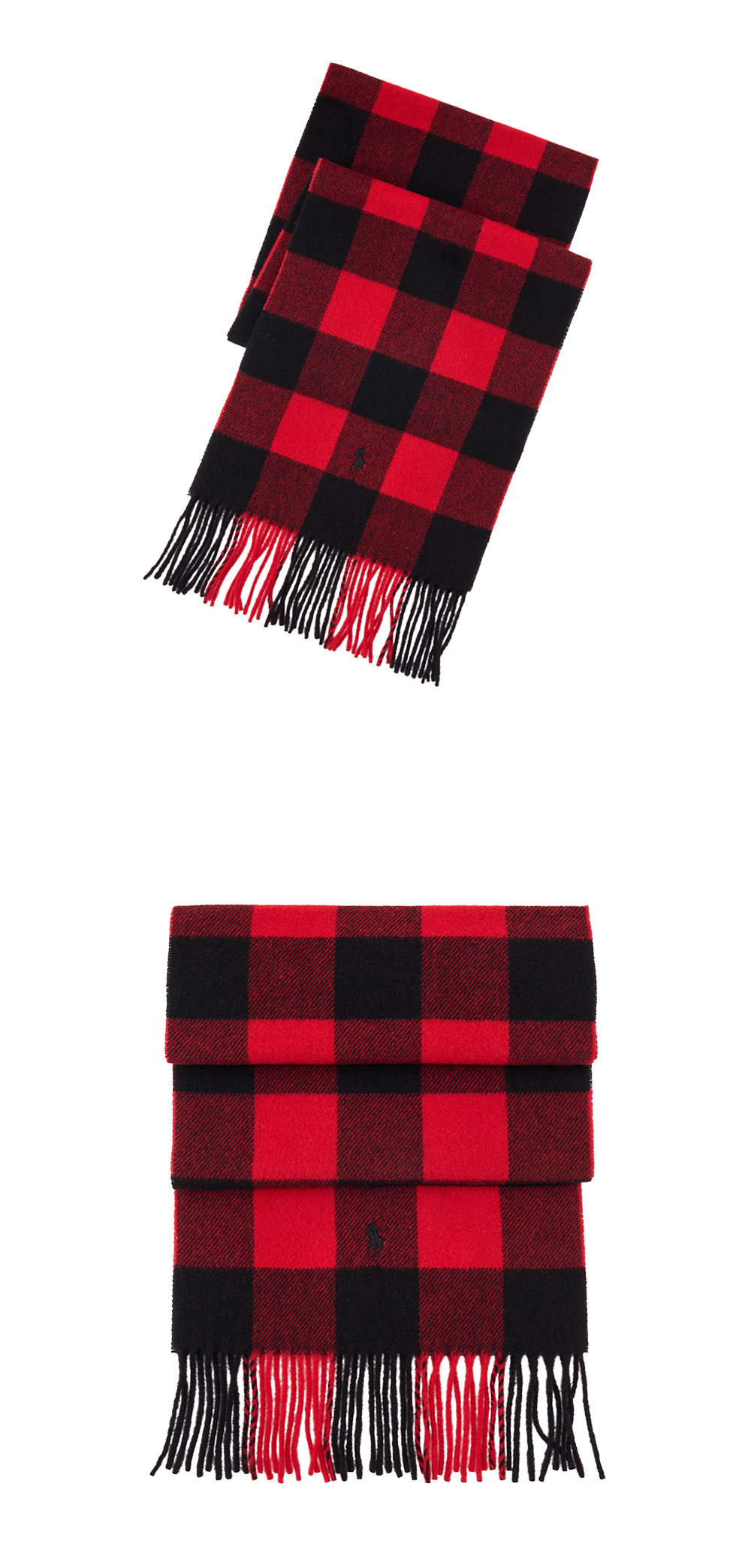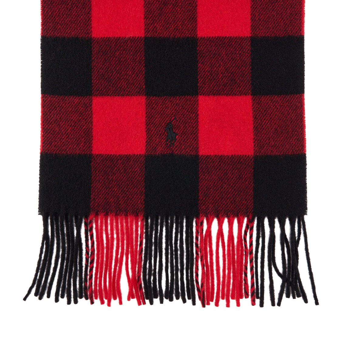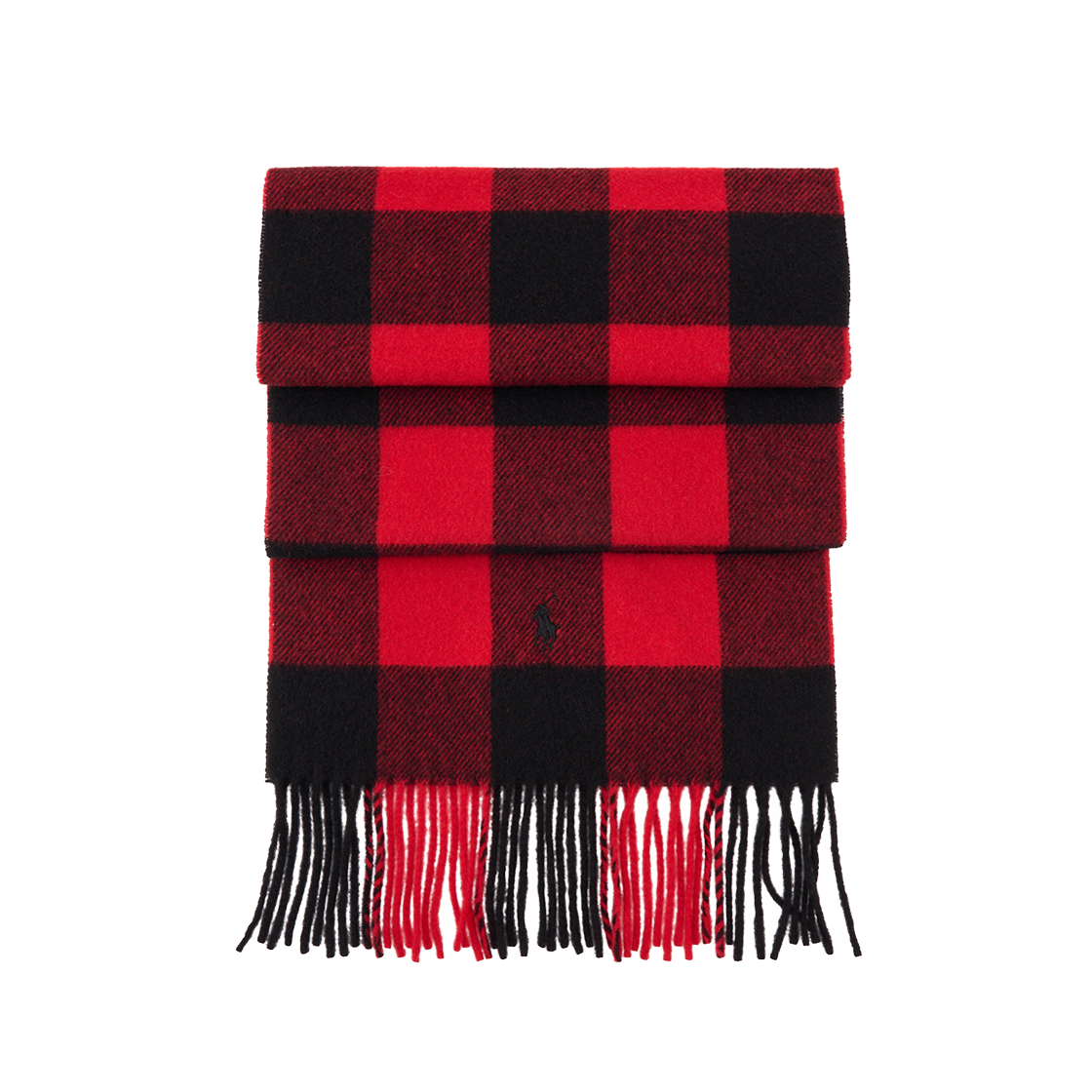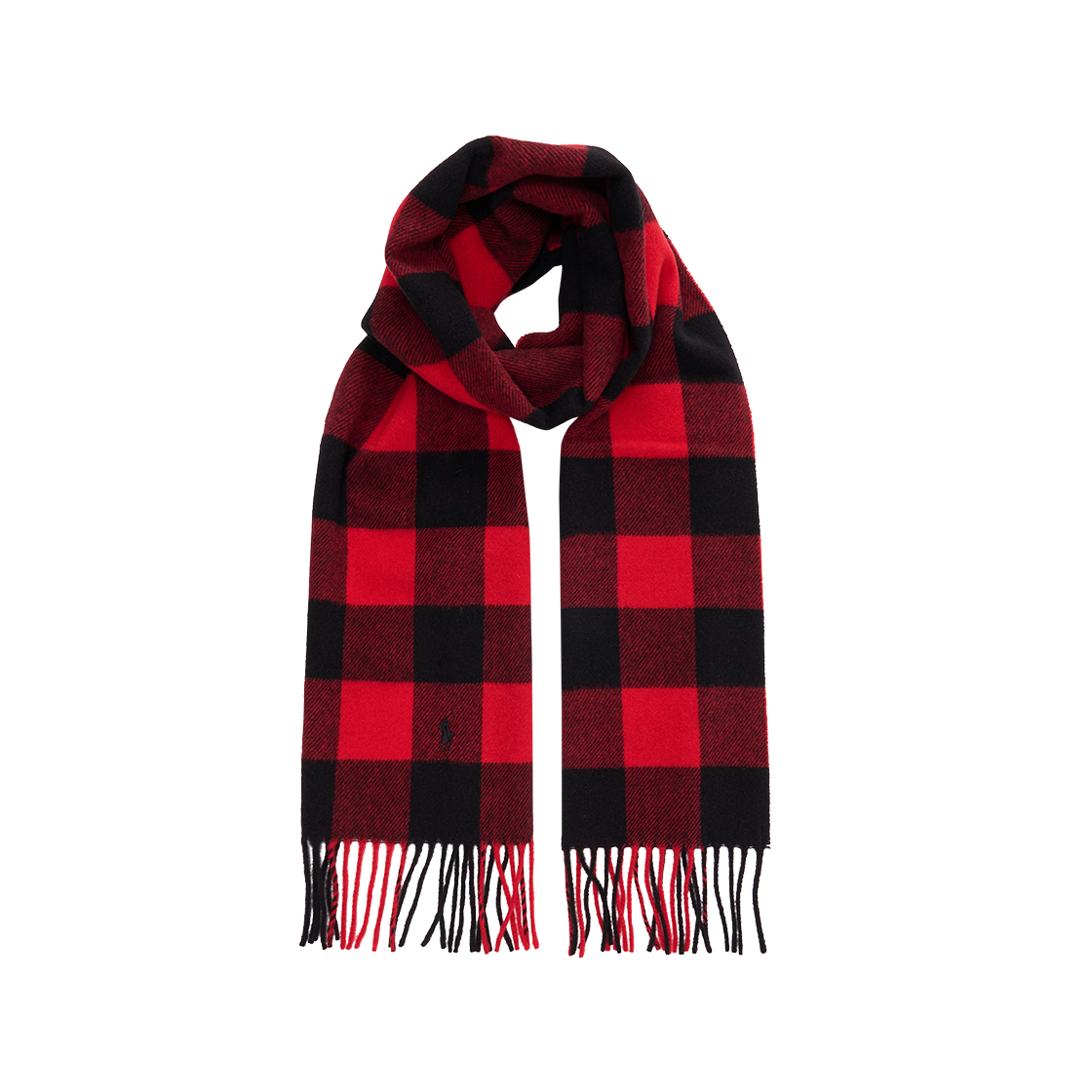 [30%적립] 폴로 랄프 로렌 플래드 프린지 울 스카프 레드 블랙 - 24FW