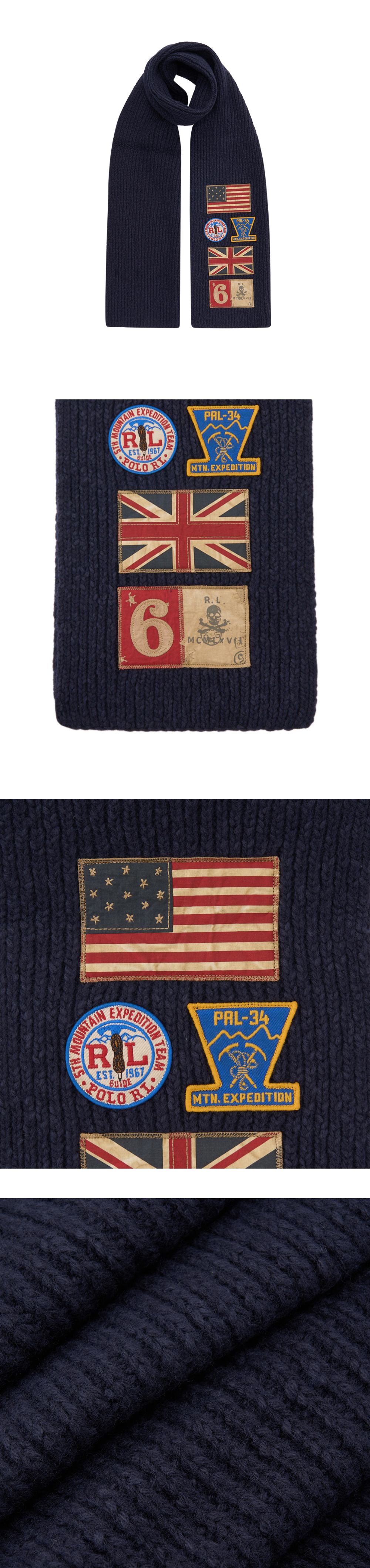 [30%적립] 폴로 랄프 로렌 멀티 플래그 패치 스카프 네이비 - 24FW