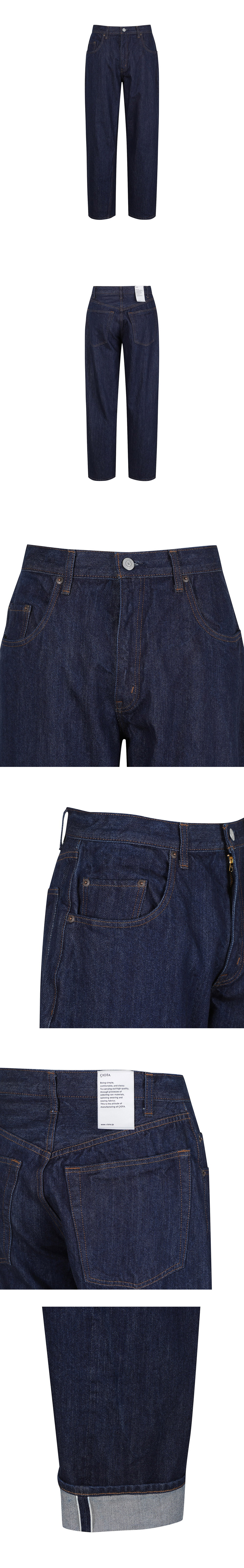 90년대에서 볼 수 있는 디테일을 가득 담은 시오타의 배기 팬츠입니다. - 루즈한 핏 - 긴 밑위 길이 - 고급 면 소재인 Suvin 코튼으로 제작됨 - 구식 직조기로 제작 및 셀비지 마감 처리 * 네이비 컬러는 one-wash 원단으로, 약간의 뒤틀림이 발생할 수 있습니다.