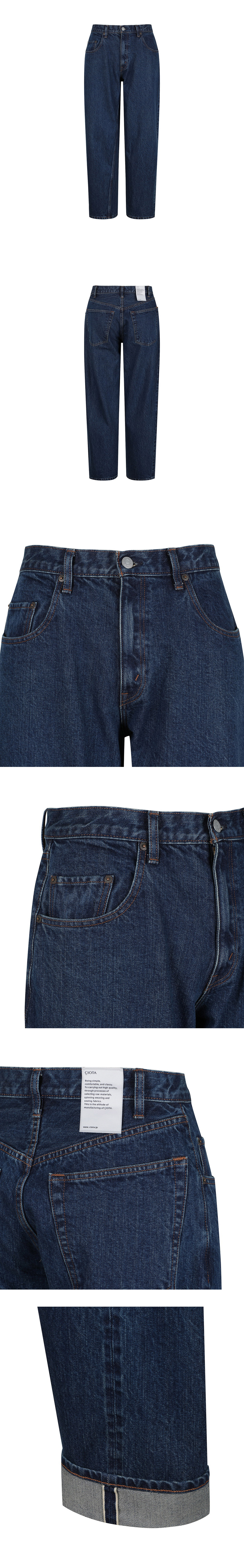 90년대에서 볼 수 있는 디테일을 가득 담은 시오타의 배기 팬츠입니다. - 루즈한 핏 - 긴 밑위 길이 - 고급 면 소재인 Suvin 코튼으로 제작됨 - 구식 직조기로 제작 및 셀비지 마감 처리