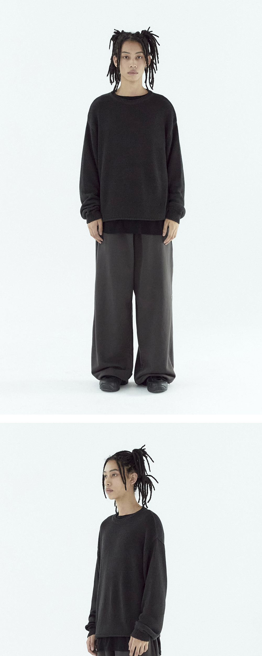 index sweat pants 002 * 부드럽고 포근한 터치의 스웻 팬츠 * 넉넉하고 자연스러운 실루엣 * 가먼트 워시 * 조절 가능한 허리와 밑단의 엘라스틱 스트링