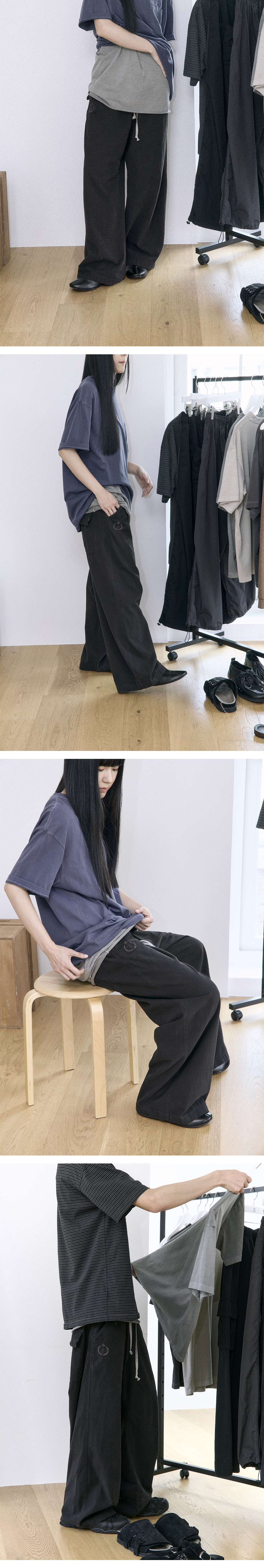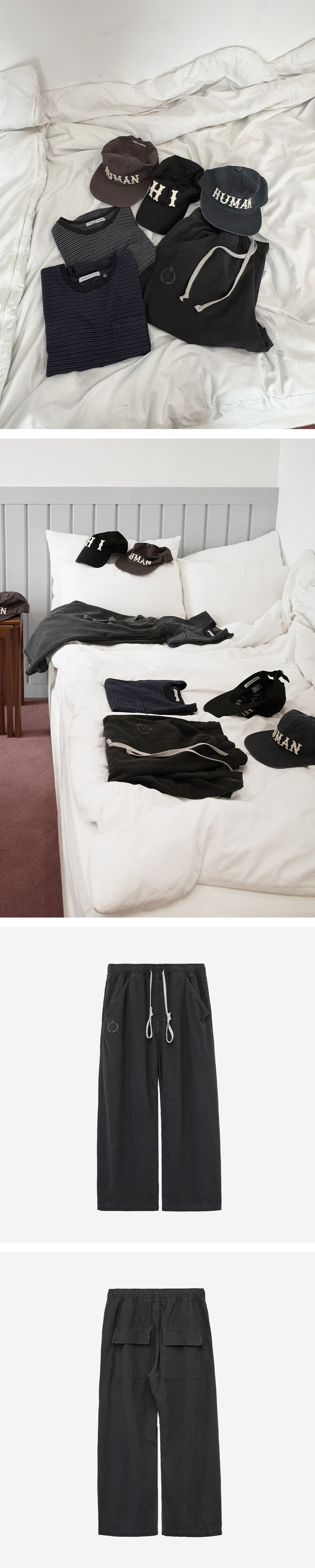 human pajama pants * 러프한 질감의 파자마 팬츠 * 루즈하고 내추럴한 실루엣 * 밴딩 웨이스트 & 스트링 * 가먼트 다이드 *남성모델: 180 초반 / 마른 체형, 3사이즈 착용 *여성모델: 170 초반 / 마른 체형, 3사이즈 착용 *가먼트 다잉 제품 특성상 생산 차수마다 색감이 조금씩 변경 될 수 있습니다. *다만 금번 차수 경우, 전 차수와의 색감차가 극히 미약해 별도 차이점은 코멘트 없이 발매 됩니다. 본 제품은 직전 차수와 유사한 실측 및 착용감으로 제작되었습니다. 기존 동일 제품을 착용해보신 고객의 경우, 동일 사이즈 선택 시 적합한 핏으로 착용이 가능합니다. 정확한 상세 사이즈의 경우, 실측표 확인 부탁드립니다.