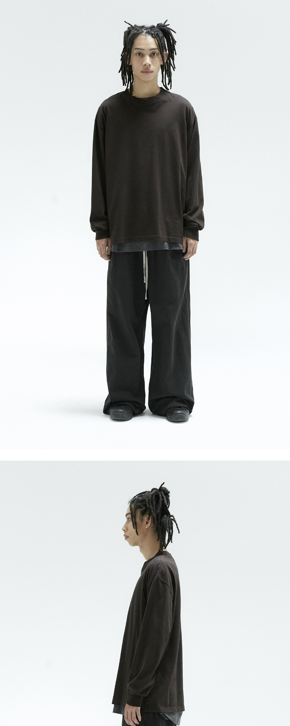 human long sleeves * 부드러운 촉감의 싱글저지 코튼 롱슬리브. * 넉넉하되 루즈하게 떨어지는 실루엣