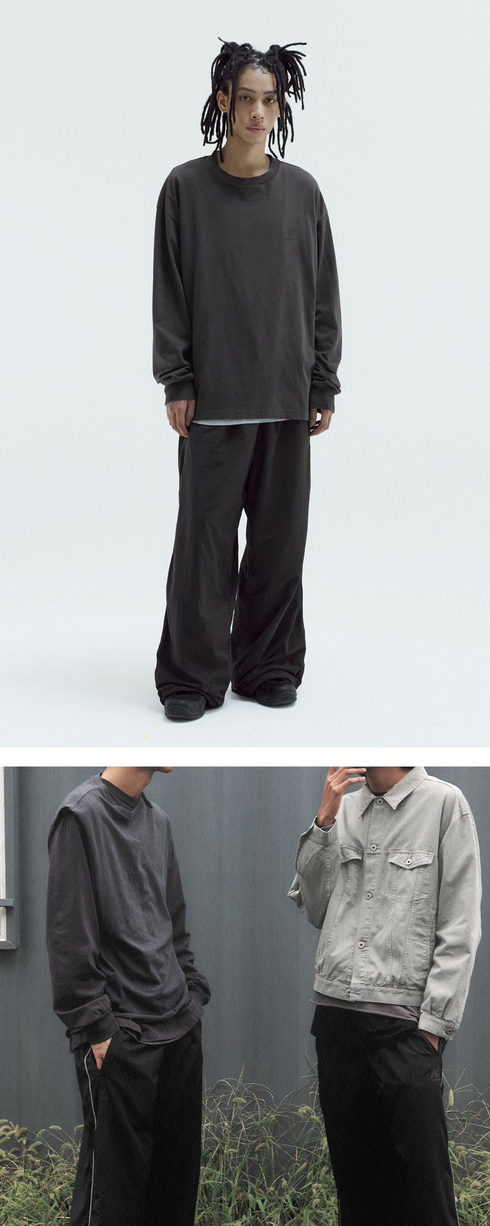 human long sleeves * 부드러운 촉감의 싱글저지 코튼 롱슬리브. * 넉넉하되 루즈하게 떨어지는 실루엣