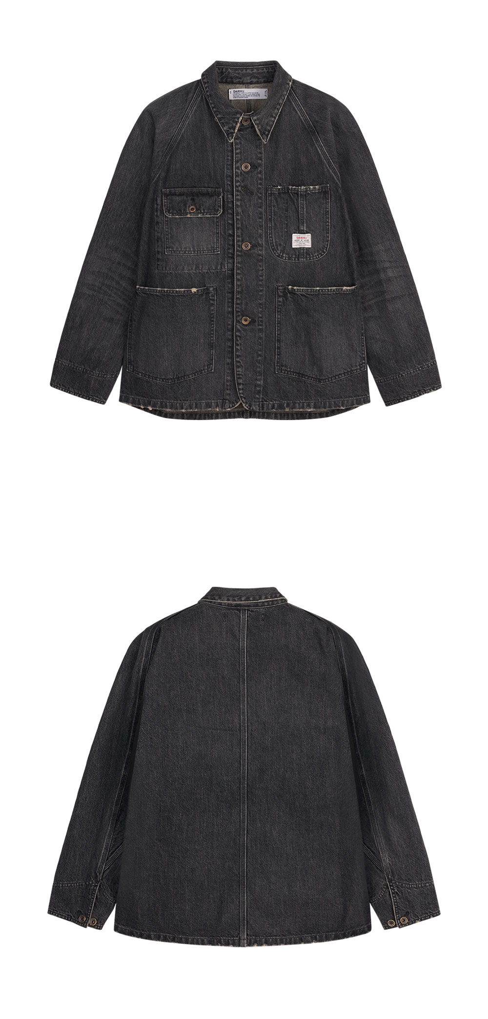 오래 사용한 듯한 자연스러운 데미지 디테일이 매력적인 다이리쿠의 빈티지 커버올입니다. - 래글런 디자인 - 수작업으로 진행된 데미지 디테일 - 좌측 가슴 패치 디테일 - 3개의 패치 포켓 및 1개의 플랩 포켓 - 전면 및 소매의 로고가 각인된 버튼 - 소매 버튼으로 실루엣 조절 가능 * 데미지 가공은 수작업으로 진행되기 때문에 개체별로 차이가 있을 수 있습니다.