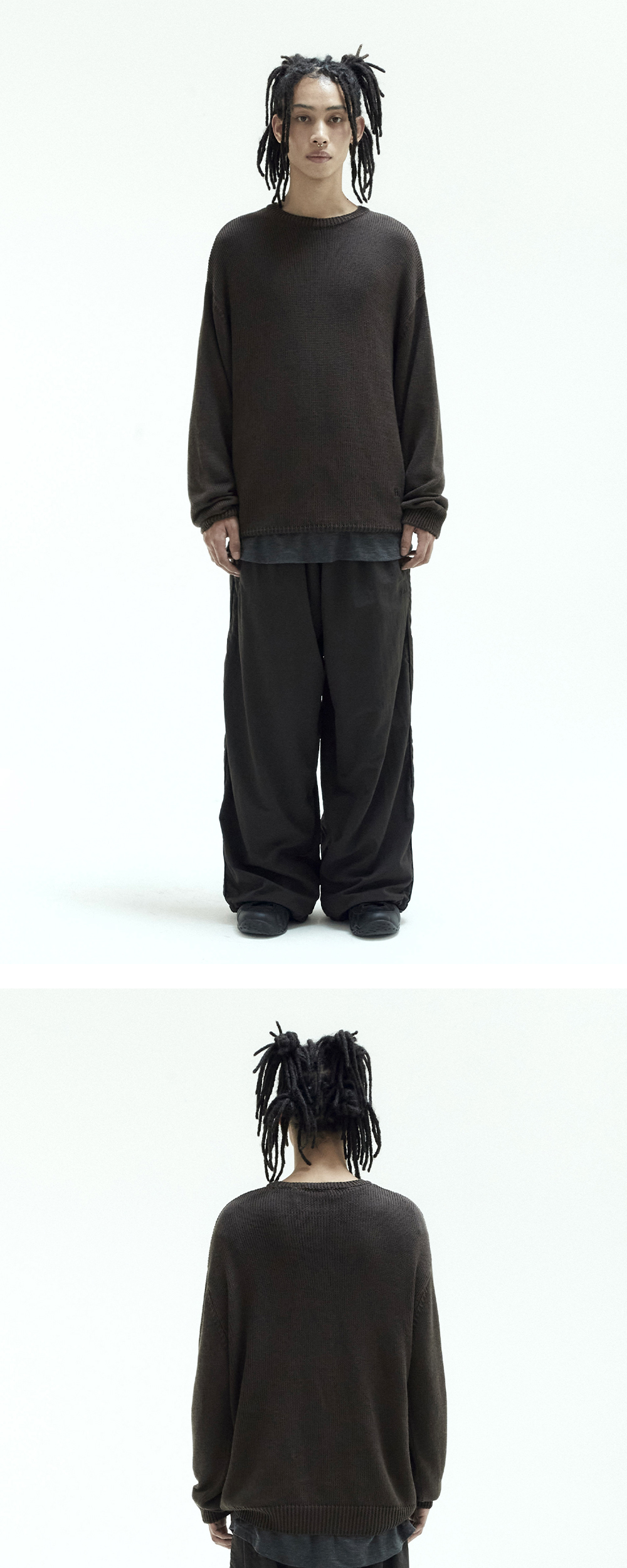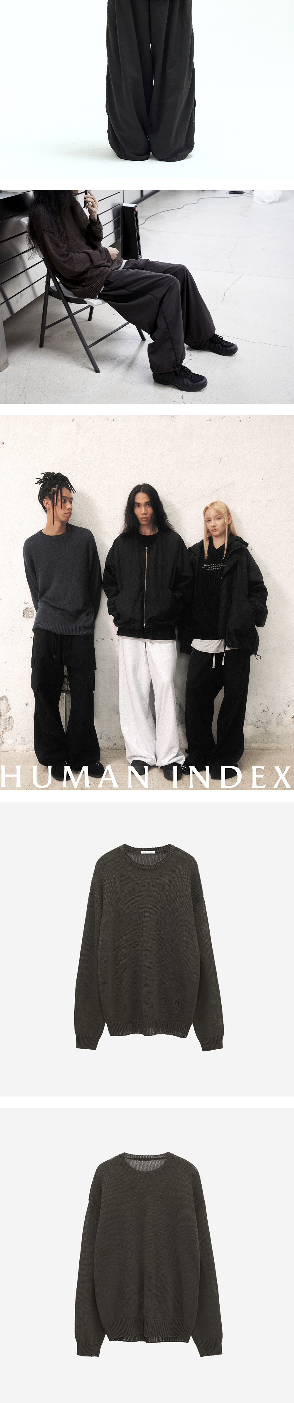 human loosed knit * 부드러운 촉감의 니트 * 루즈하게 떨어지는 실루엣 * 성긴 조직감으로, 이너티셔츠 그래픽을 이용한 레이어링 가능 * 착용시 최적의 연출 - 전면 밑단을 가볍게 접어넣어주세요.